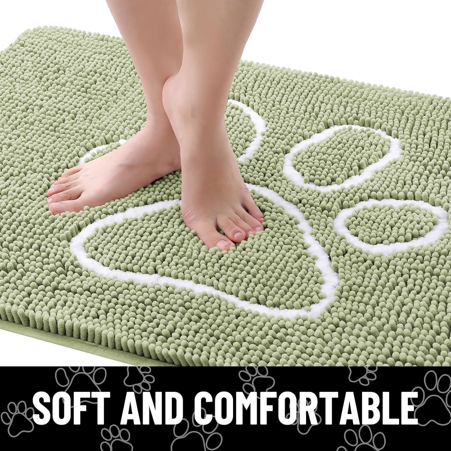 Smiry Dog Door Mat for Muddy Paws, Absorbent Dirt Trapper Non Slip Quick Dry Washable Chenille Mat for Mud Dogs, Entry Rug for Indoor and Outdoor (48x30 Inches, Sage Green)
