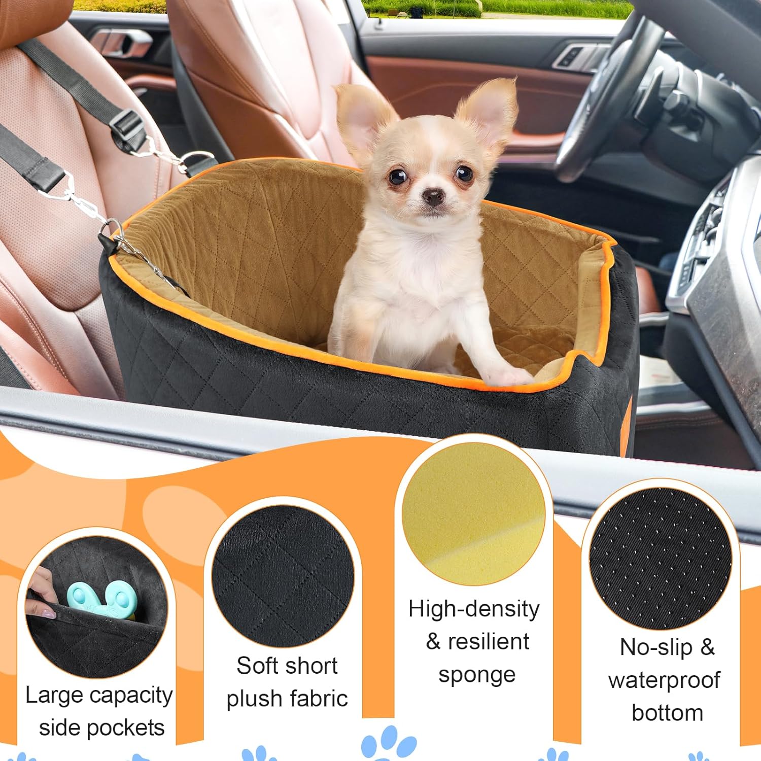 Dog Car Seat for Small Dogs, Memory Foam Booster Dog Seat for Dogs up to 35 lbs, Elevated Pet Car Seat with Washable Removable Cover, Storage Pockets