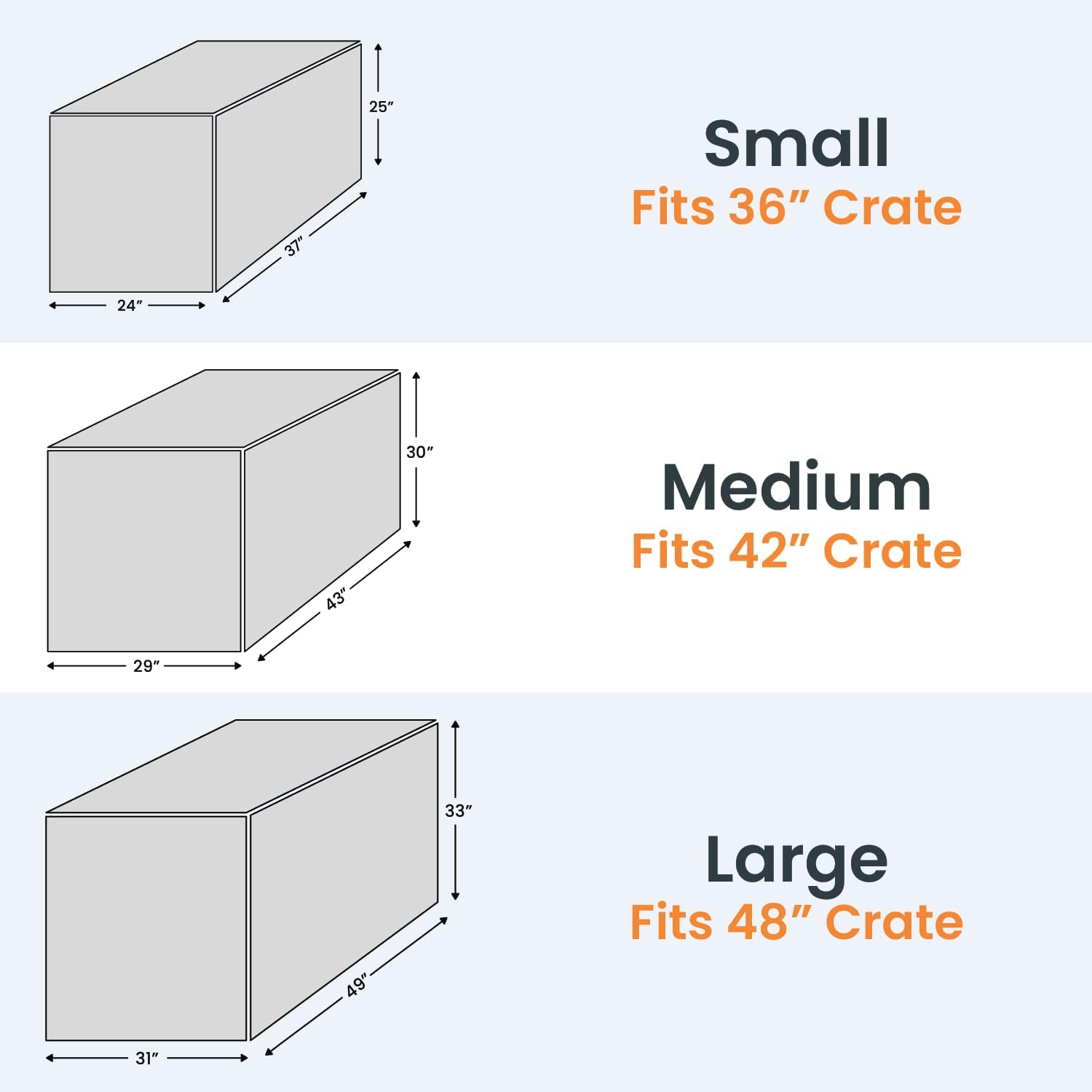 - MULTIPLE SIZES FOR A CUSTOMIZED FIT: Available in 36", 42", and 48" sizes, this crate cover is designed to fit most standard wire crates with a snug, secure fit. Perfect for home or travel, it creates a cozy, private space that helps your dog feel safe, comfortable, and undisturbed.