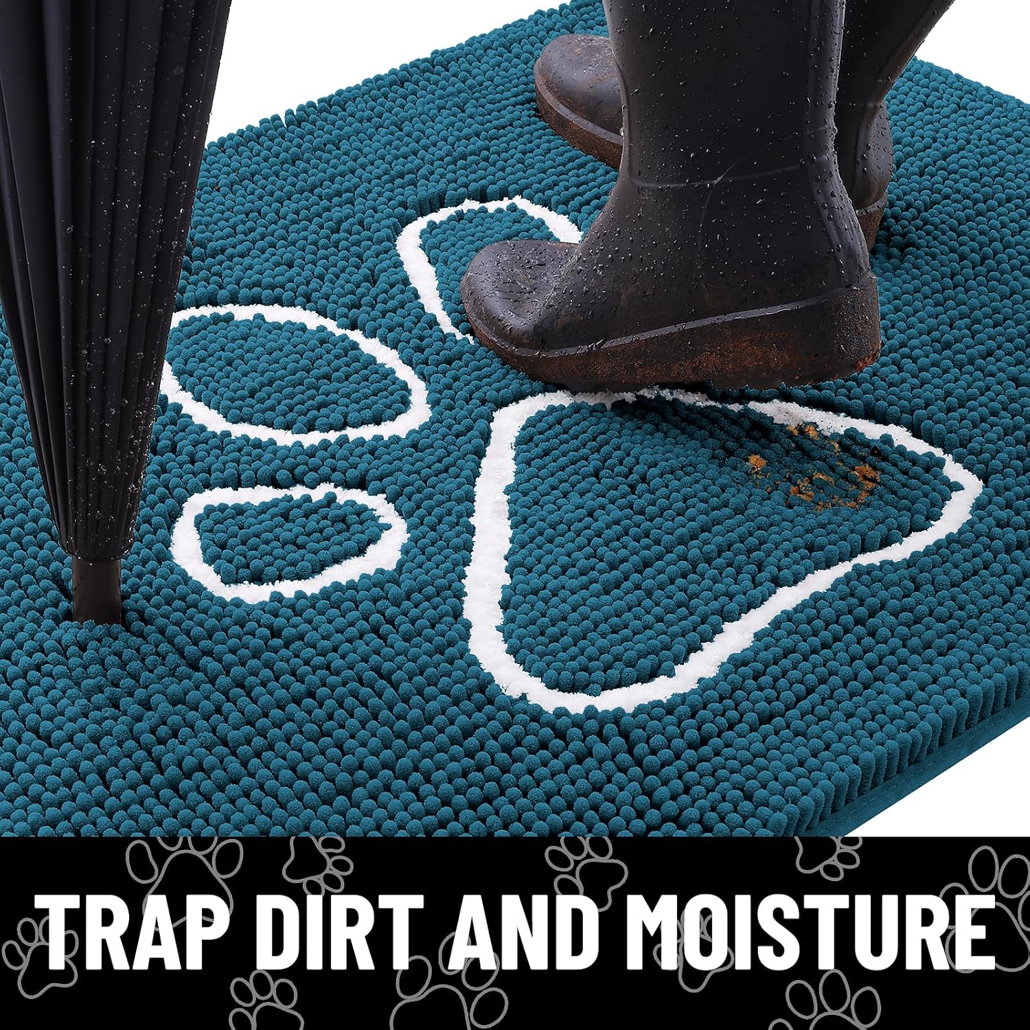 Smiry Dog Door Mat for Muddy Paws, Absorbent Dirt Trapper Non Slip Quick Dry Washable Chenille Mat for Mud Dogs, Entry Rug for Indoor and Outdoor (30x20 Inches, Atlantic Blue)