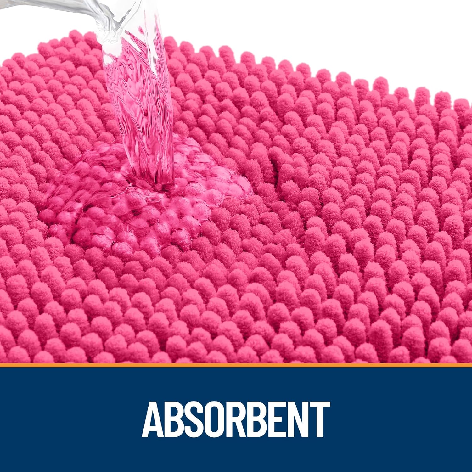 OLANLY Dog Door Mat for Muddy Paws 24x16, Absorbs Moisture and Dirt, Absorbent Non-Slip Washable Doormat, Quick Dry Chenille Mud Mat for Dogs, Entry Indoor Entryway Carpet for Inside Floor, Hot Pink