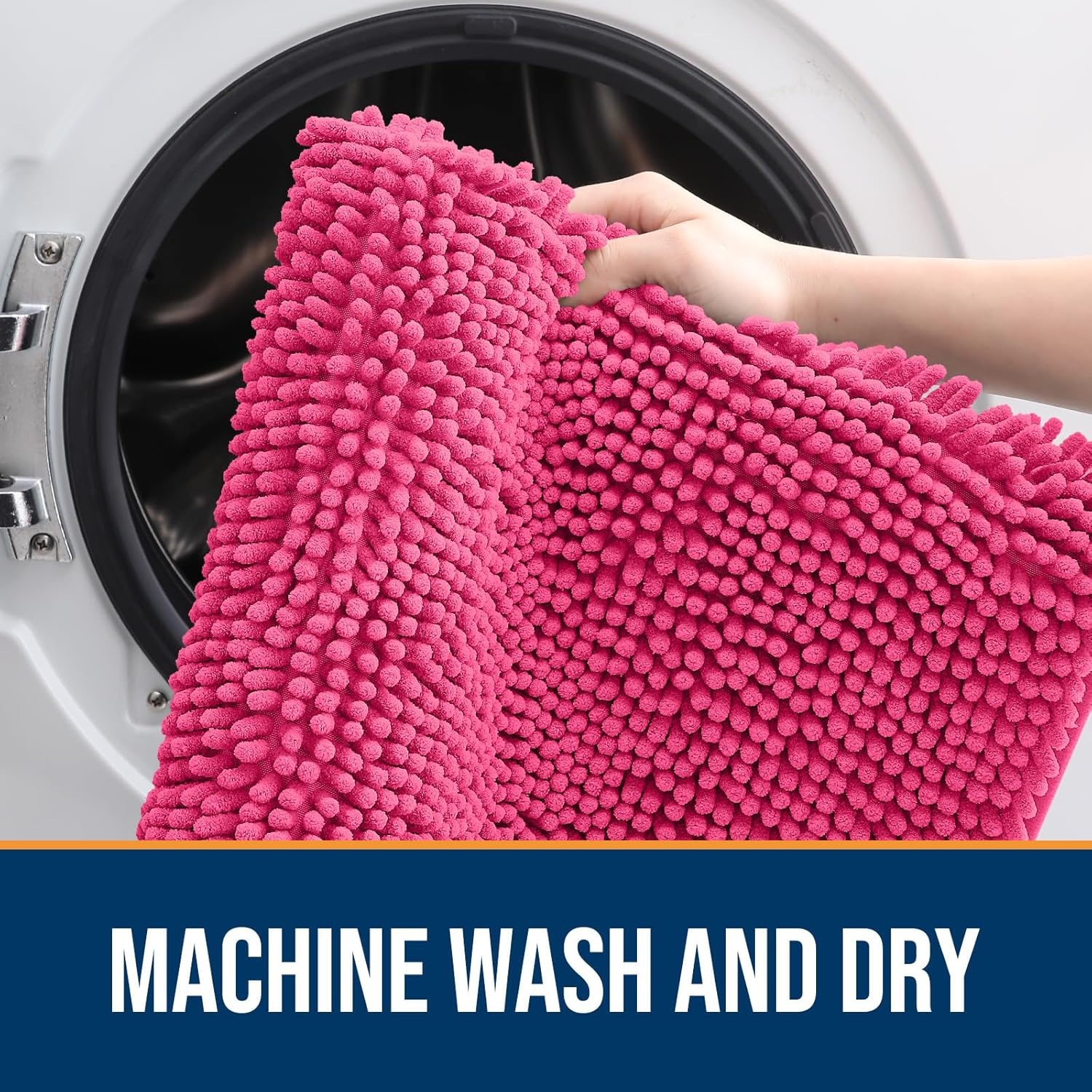 OLANLY Dog Door Mat for Muddy Paws 30x20, Absorbs Moisture and Dirt, Absorbent Non-Slip Washable Doormat, Quick Dry Chenille Mud Mat for Dogs, Entry Indoor Entryway Carpet for Inside Floor, Hot Pink