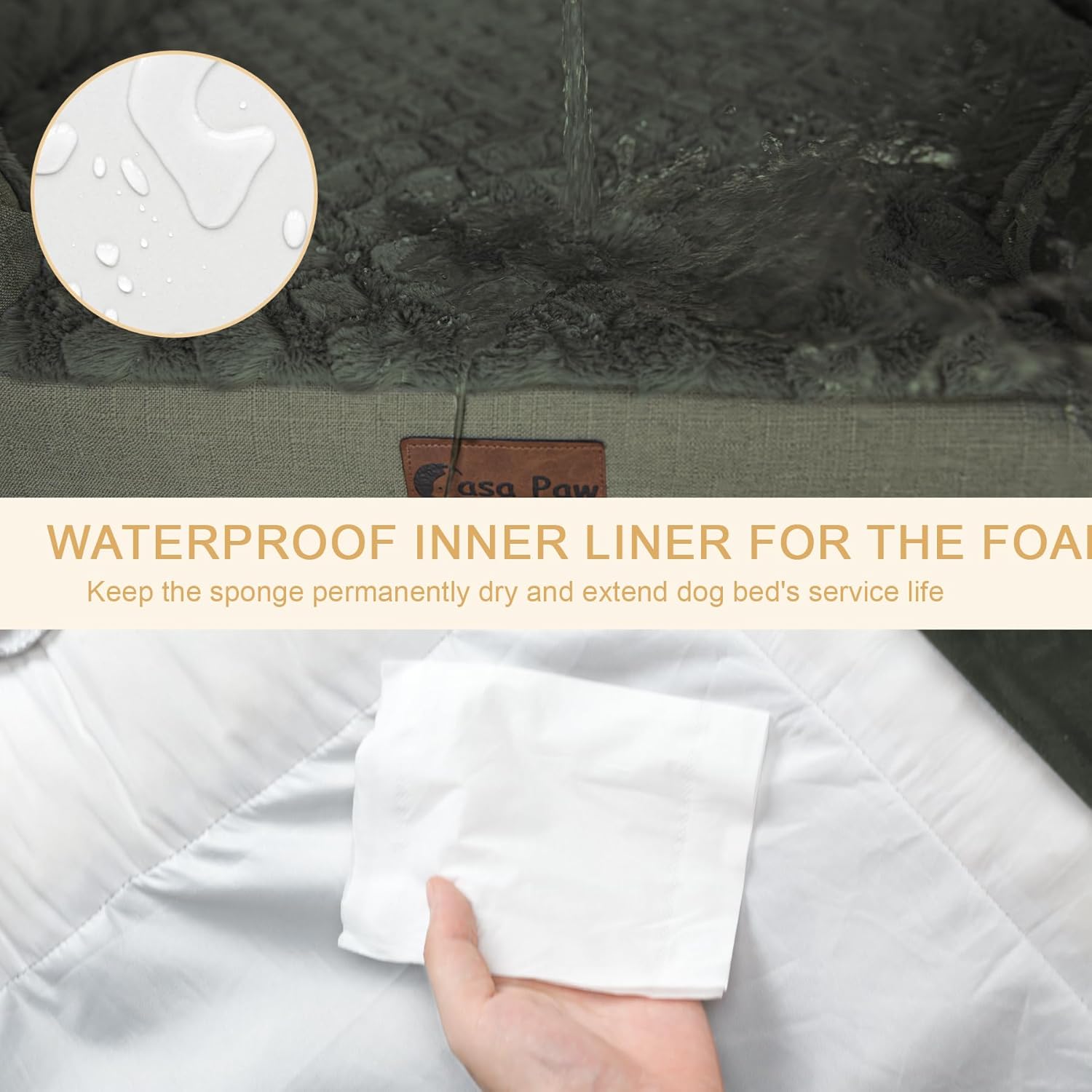 Orthopedic XL Dog Bed for Extra Large Dogs, Waterproof Memory Foam Dog Beds with Sides, Non-Slip Bottom and Egg-Crate Foam Big Dogs Beds with Removable Washable Cover(X-Large,Dark Green)