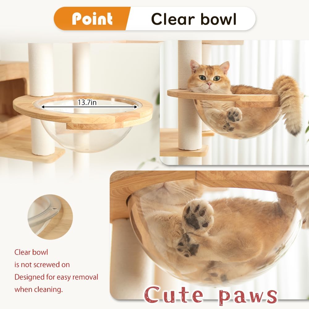 • Private Cat House & Acrylic Bubble Lounge-Includes a cozy wooden cubby with a cute cat-head opening for privacy and an acrylic bubble perch to satisfy your catโ€™s curiosity and love for elevated views.