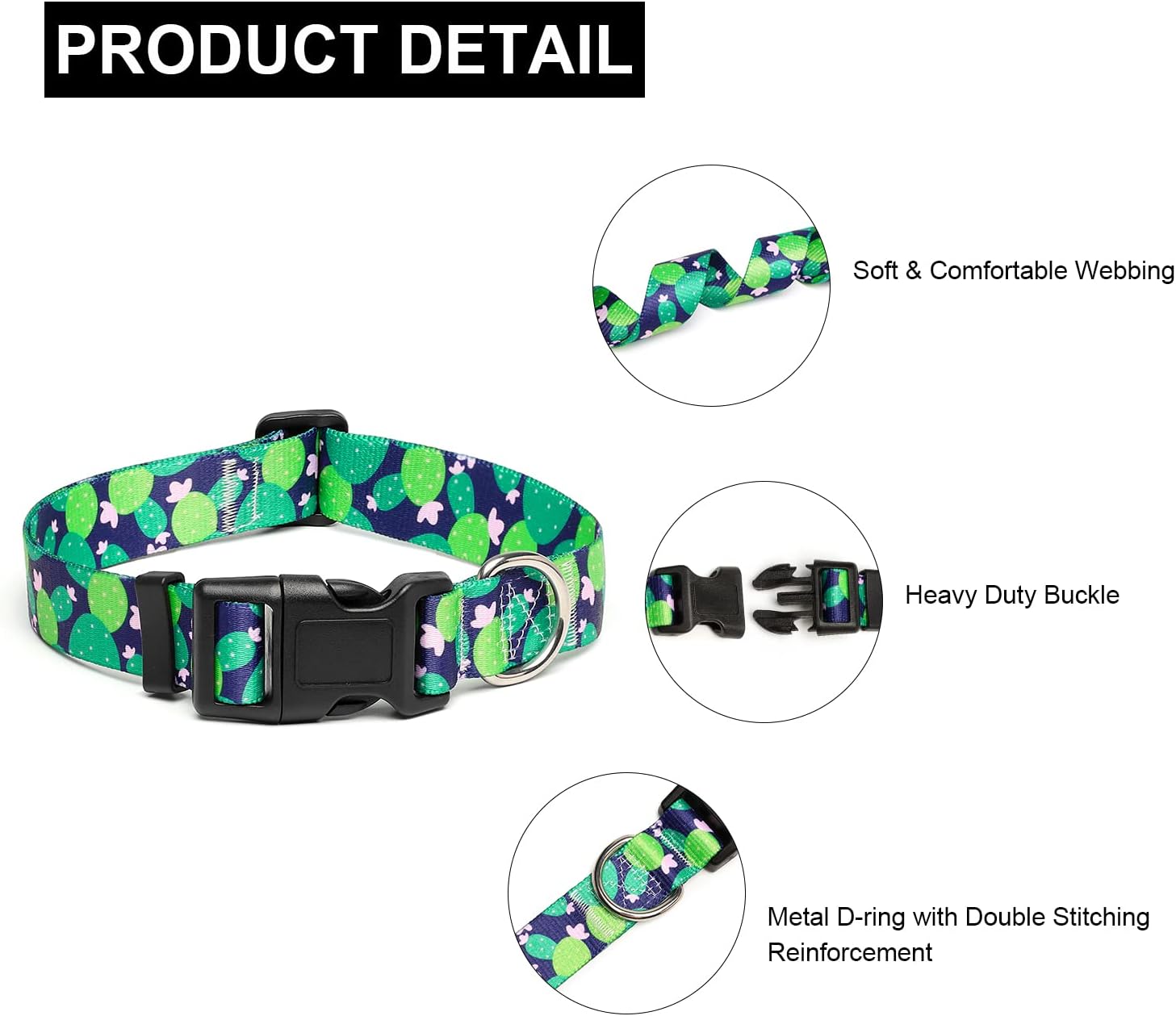 Mercano Adjustable Dog Collar - Special Design Patterns, Soft Nylon Comfortable Durable Pet Collar for Small Medium Large Dogs (XS, Cactus)