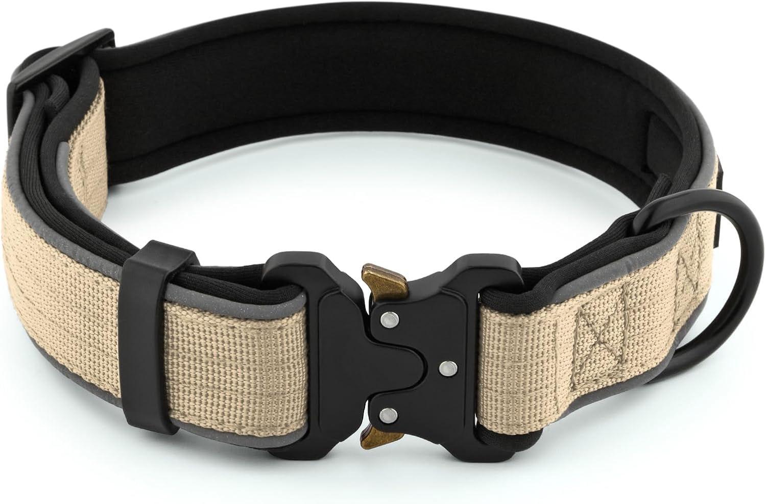 Plutus Pet Tactical Dog Collar, Reflective, Adjustable Heavy Duty Dog Collar, Soft Padded and Comfortable, for Small Medium and Large Dogs (Beige, M)