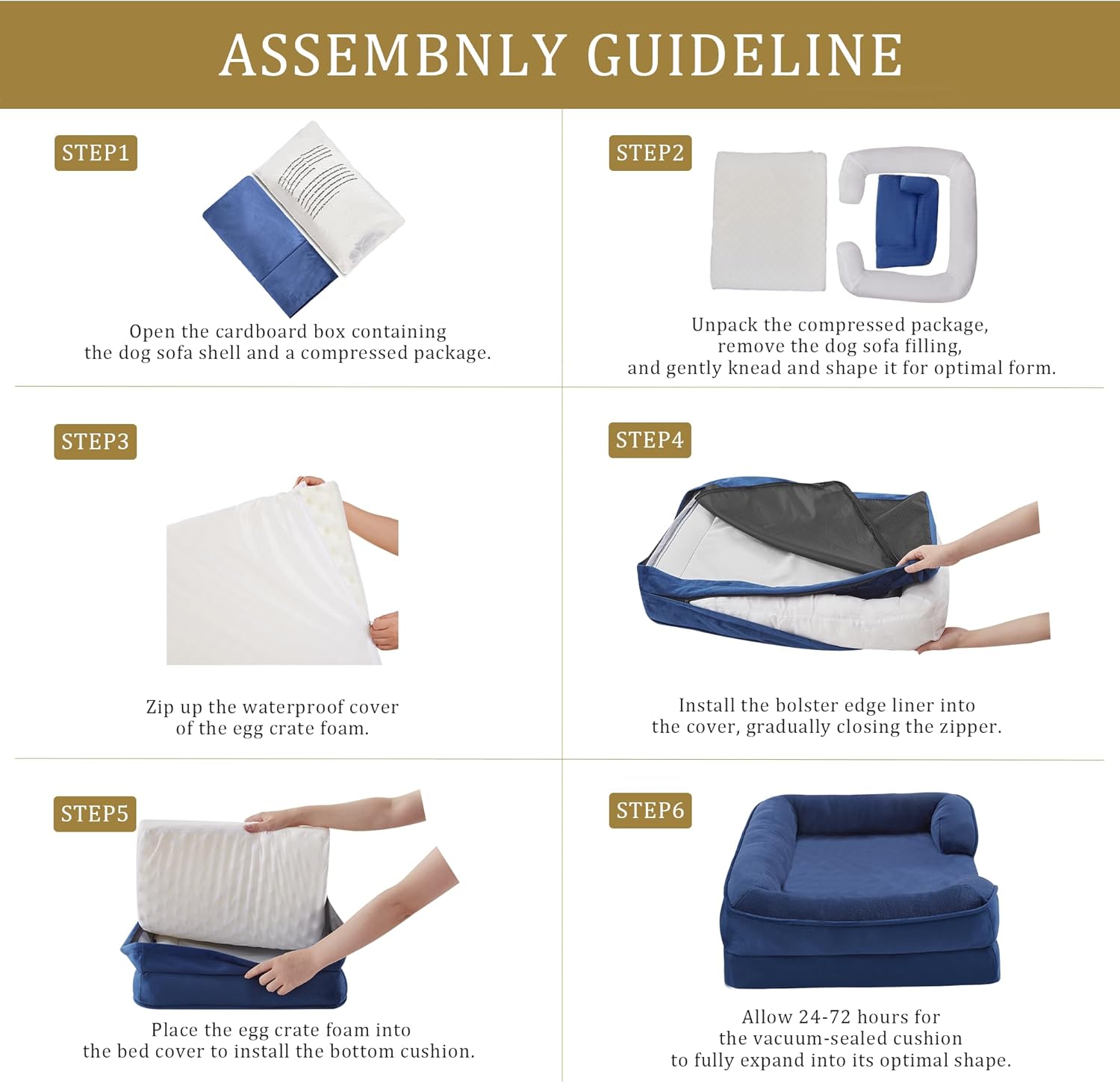- Suitable Size: Suitable for All Breeds: 48"W x 35"L x 8"D; Sleeping surface: 39.5"W x 31"L (Up to 120lbs); When selecting the product size, please pay attention to the sleeping area. Please wait for 48 hours for full expansion to ensure optimal height and comfort before using.