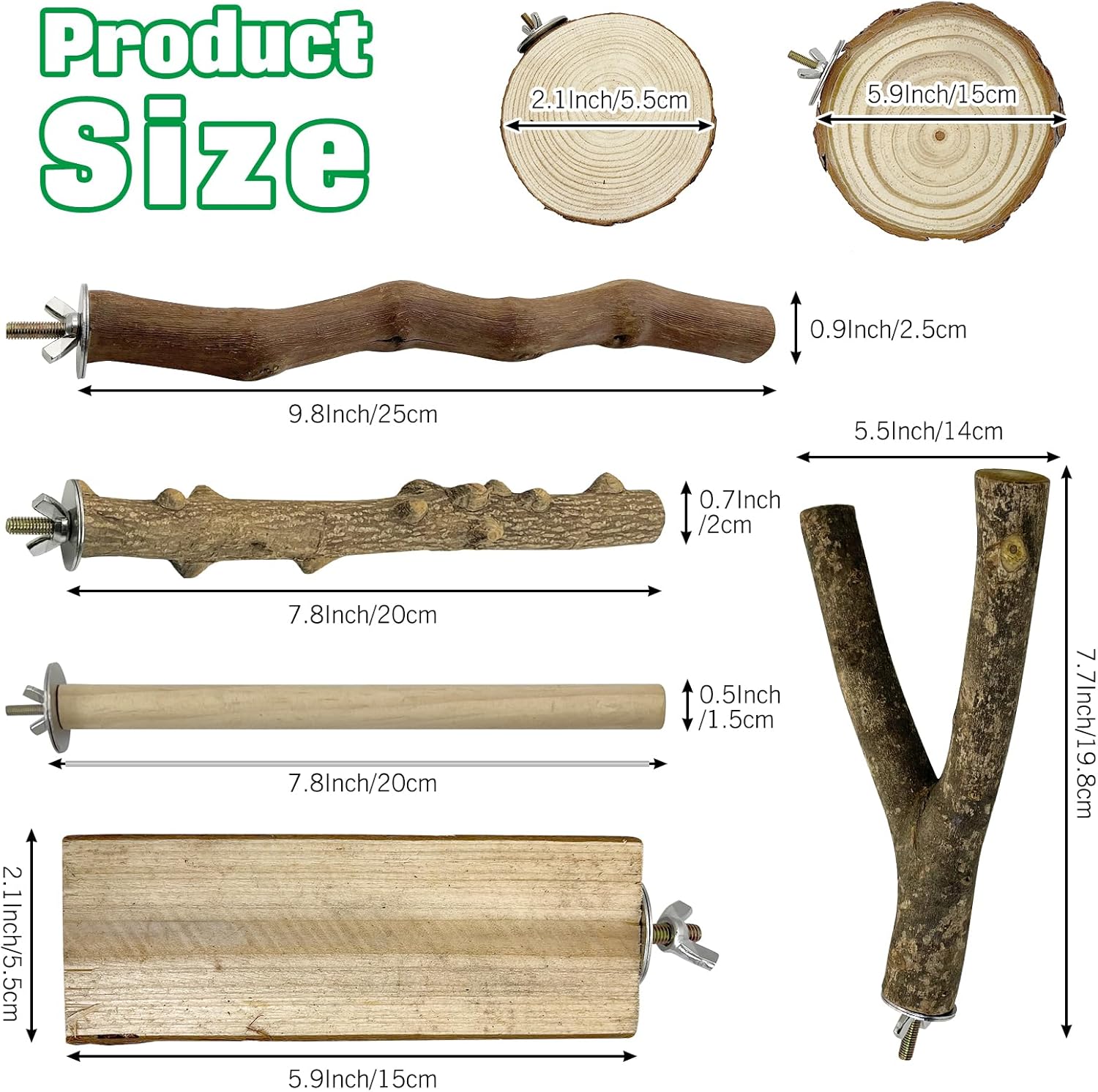 - NATURAL PERCHES: These natural bird perches decorate your bird cage, provide hours of fun for your bird every day, and reduce pet aggression and loneliness. They are suitable for chewing and gnawing, and also for sharpening off your bird's claws and keeping the beak in shape and condition by chewing and gnawing on the perches. These wooden bird perches create a natural habitat for your adorable parrot, making your friends feel as if they are living in nature