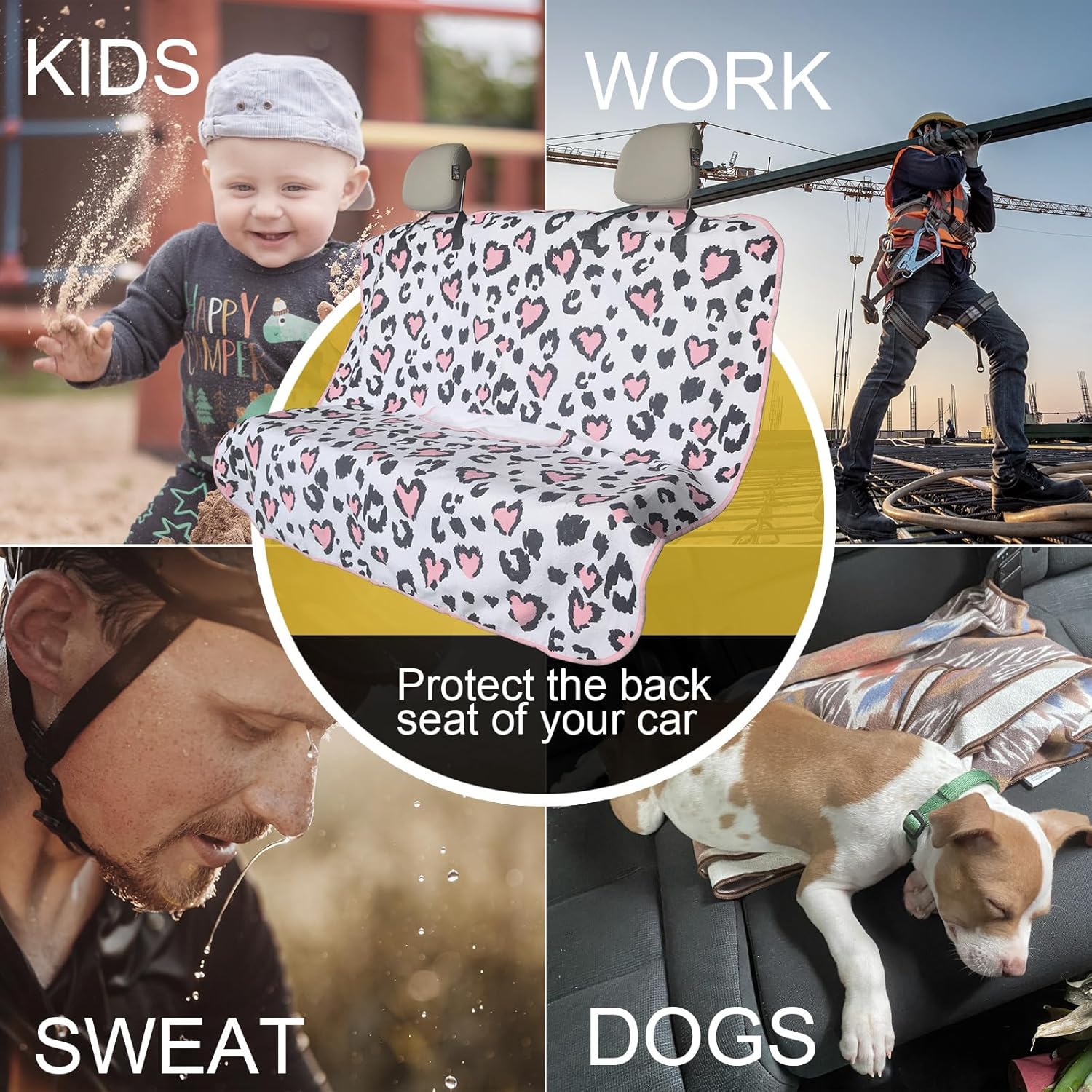 - Made From 3 Layer Material: (Front) Leopard print pattern printed on towel cloth, which gives the rear seat cover a good look and a super long life. It is perfect for leather or upholstery back seats. (Middle) Waterproof fabric that is designed to guard your backseat against moisture and sweat. (Back) This rear seat cover are designed with a non-slip backing fabric that's super comfortable and won't slip off your back seat.