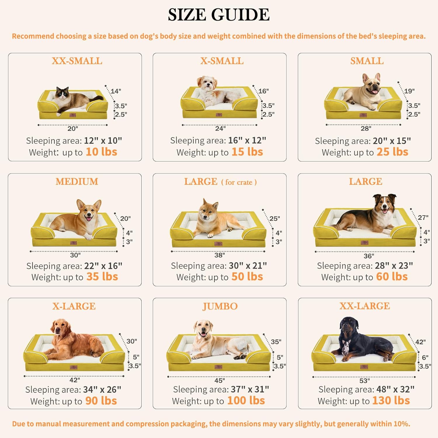 Comfort Expression Orthopedic Dog Beds, Jumbo Dog Bed for Extra Large Dogs, Waterproof Dogs Beds, PV Washable Pet Sofa Couch with Removable Cover & Non-Slip Bottom(Jumbo,Spicy Mustard)