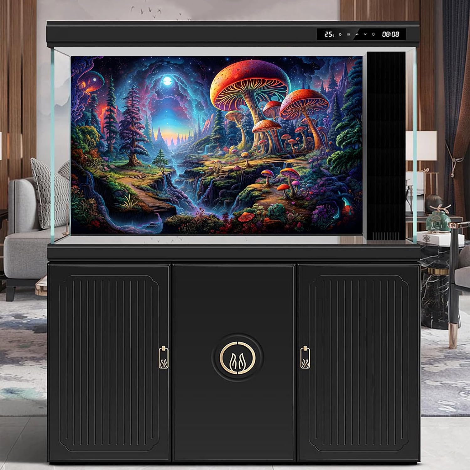 Forest Aquarium Background Fantastic Cartoon Forest Landscape with Mushrooms and Flowers Terrarium Background Fantasy Pine Tree Mysterious Mushroom Theme Fish Tank Backdrop Poster Decor 48x24in