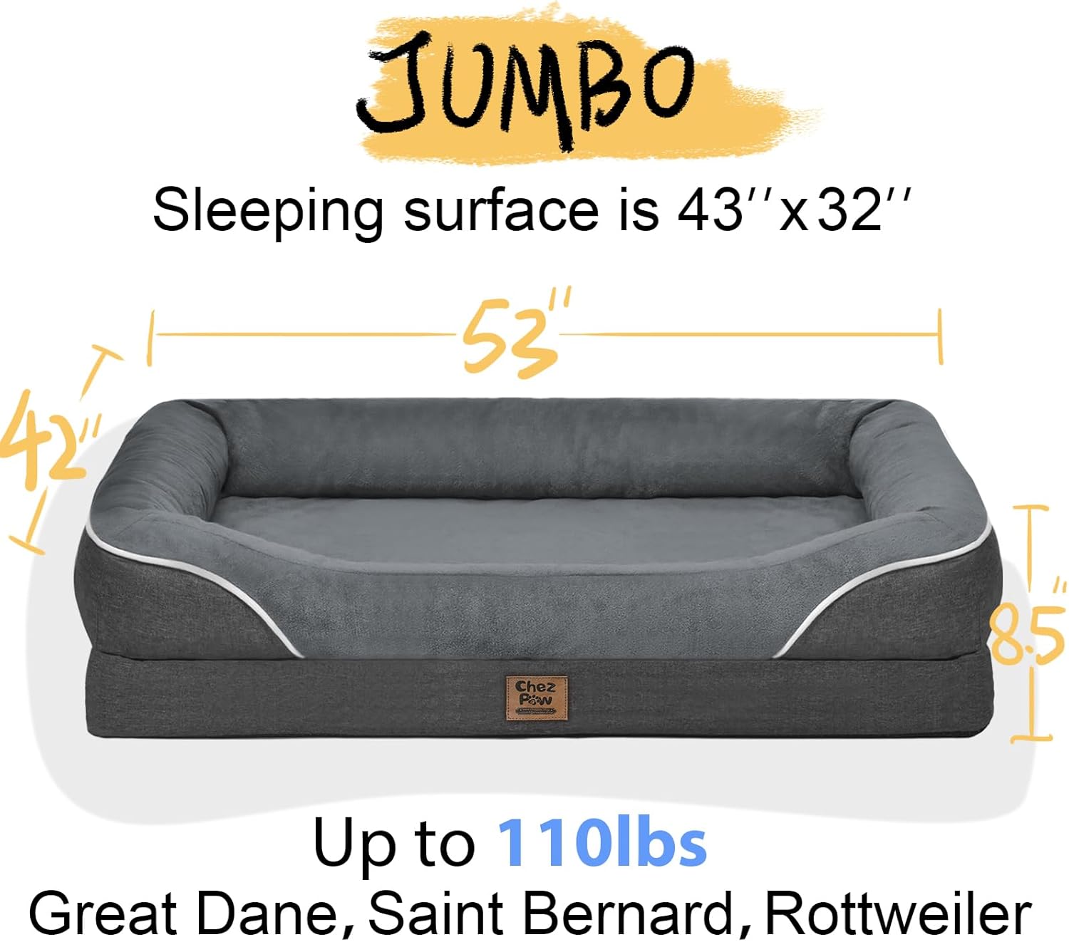 Washable Orthopedic Large Dog Bed - Removable Orthopedic Dog Beds XL with Bolster for Extra Large Dogs with Washable Cover and Non-Slip Bottom