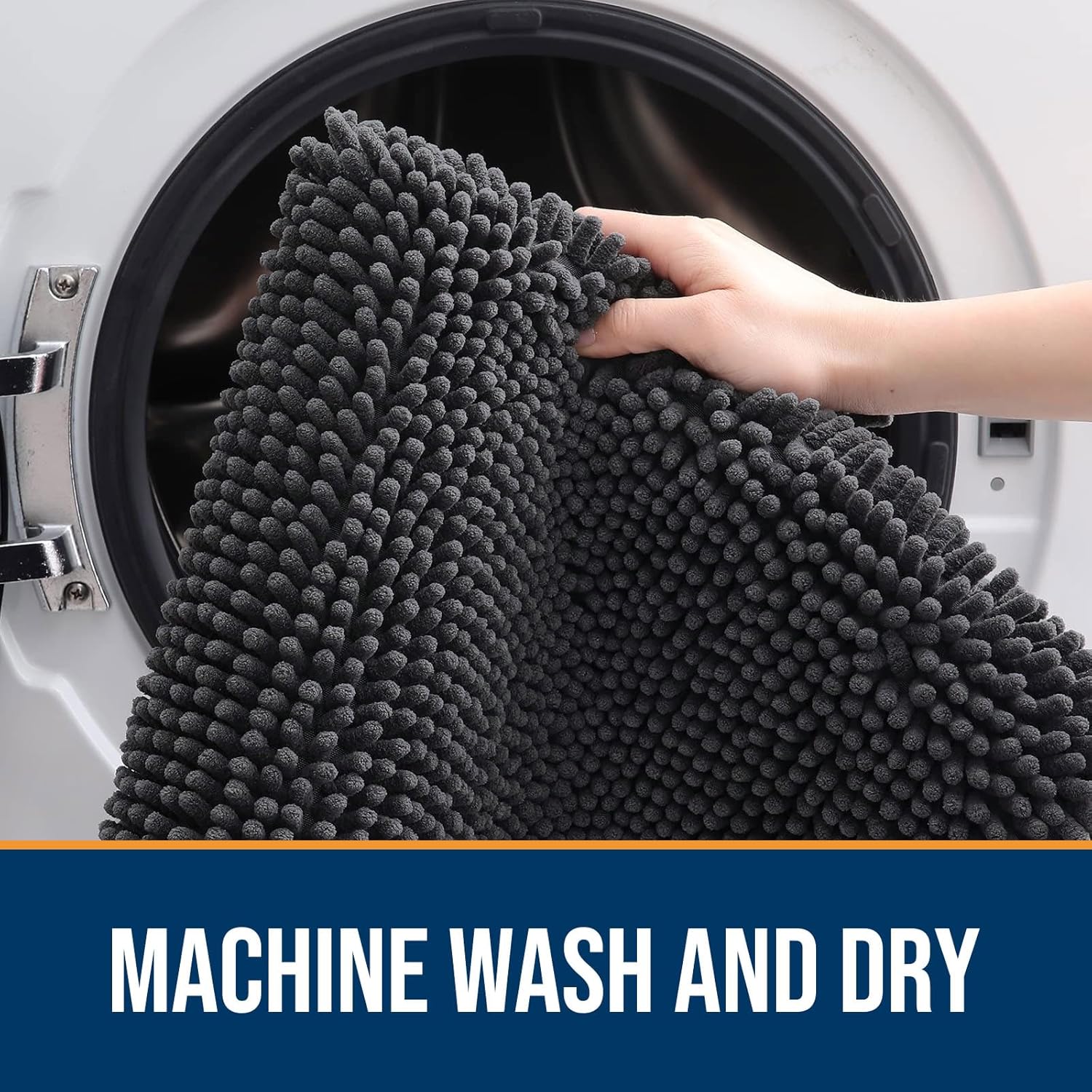 OLANLY Dog Door Mat for Muddy Paws 70x46, Absorbs Moisture and Dirt, Absorbent Non-Slip Washable Doormat, Quick Dry Chenille Mud Mat for Dogs, Entry Indoor Entryway Carpet for Inside Floor, Dark Grey
