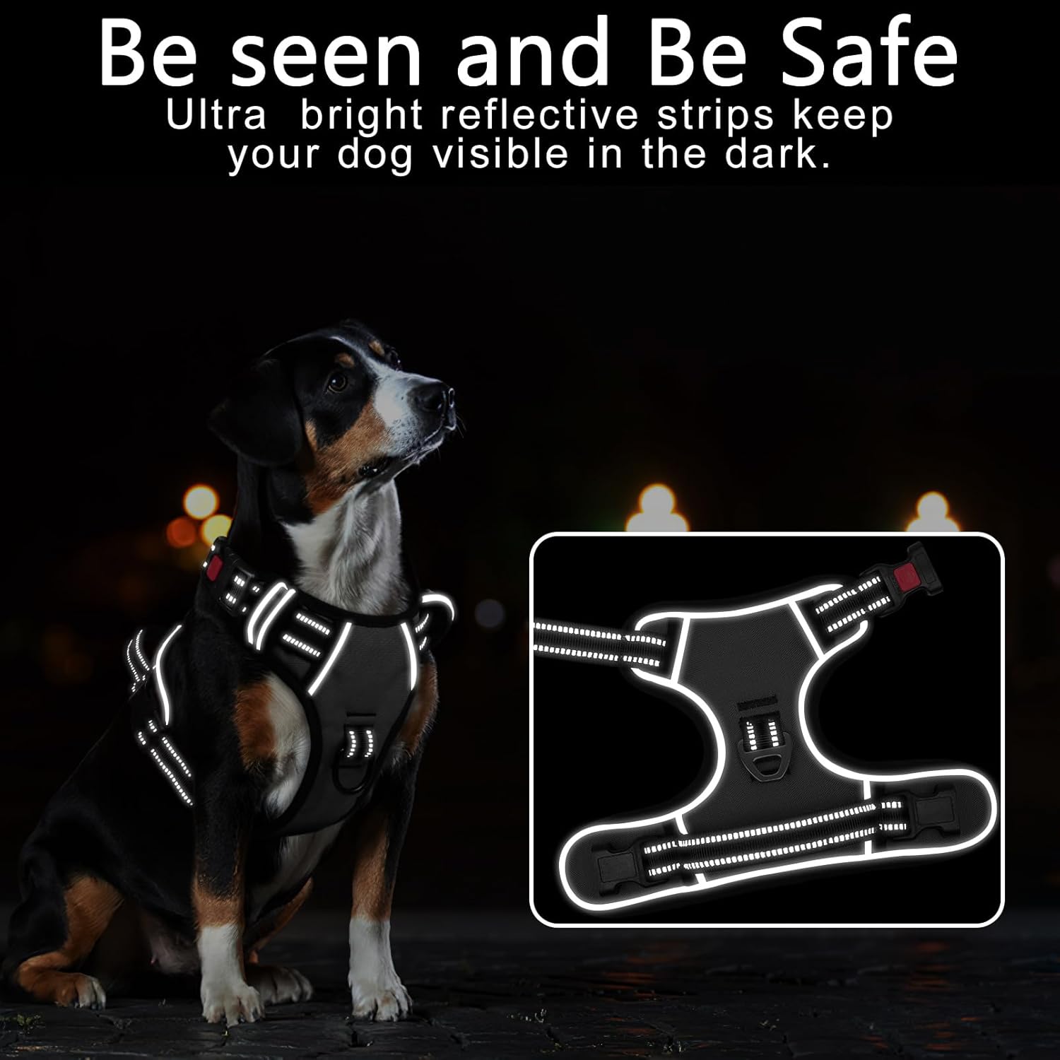 - 【MUCH SAFER & MORE COMFORTABLE】 Breathable mesh lining with soft sponge padding plate of puppy harness prevents injuries, giving extra comfort and protection with enhanced 1600D oxford fabric. The reflective material will be really nice when it gets dark. Also, your dog will be saw easily. This reflective material can make drivers have long time to react, which ensure your dog’s safety!