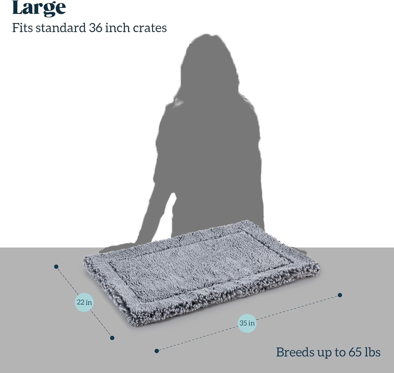 • Fits Standard Crates - The dog crate bed is compatible with 36 inch long dog crates and works perfectly as a stand-alone dog bed mat | 35 inch long durable dog bed is ideal for large dog breeds weighing up to 41-70 pounds
