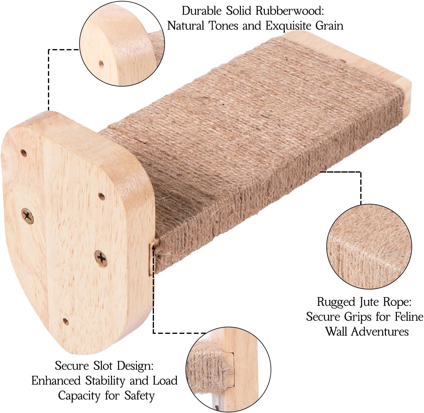 • 【Multifunctional cat wall furniture】This 3-piece set of cat wall steps is made of natural rubber wood, which is strong and stable. It not only meets the needs of cats for climbing and playing, but also, with its unique sisal rope covering design, provides an ideal scratching experience for cats. Whether used as an independent cat wall furniture or matched with other cat wall accessories, it can create a perfect activity space for your beloved cat.