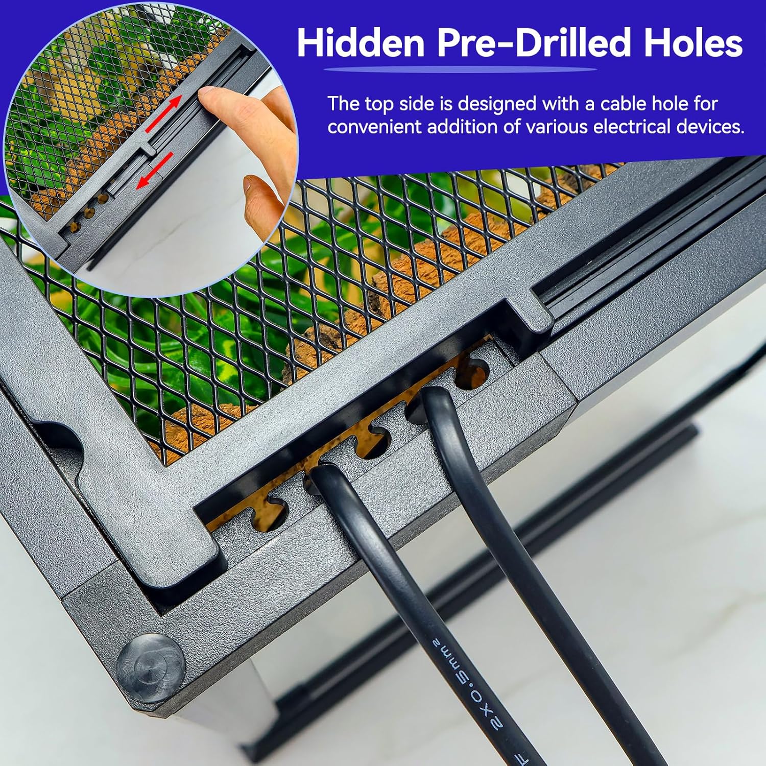 • 【Hidden Pre-Drilled Holes】: The terrarium's top is equipped with pre-drilled holes, perfect for setting up lighting, misting systems, and other reptile tank accessories. Whether you're creating a chameleon cage, a large terrarium, or a vivarium tank, this feature adds practicality without compromising aesthetics.