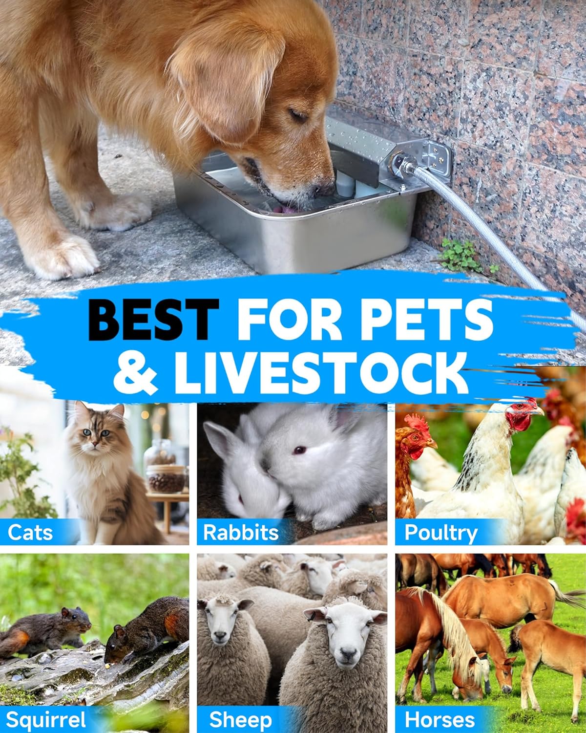 - DURABILITY: Our water dispenser is meticulously crafted from high-quality 304 stainless steel, boasting exceptional sturdiness and durability. It can withstand the bites of playful pets and the trampling of large livestock