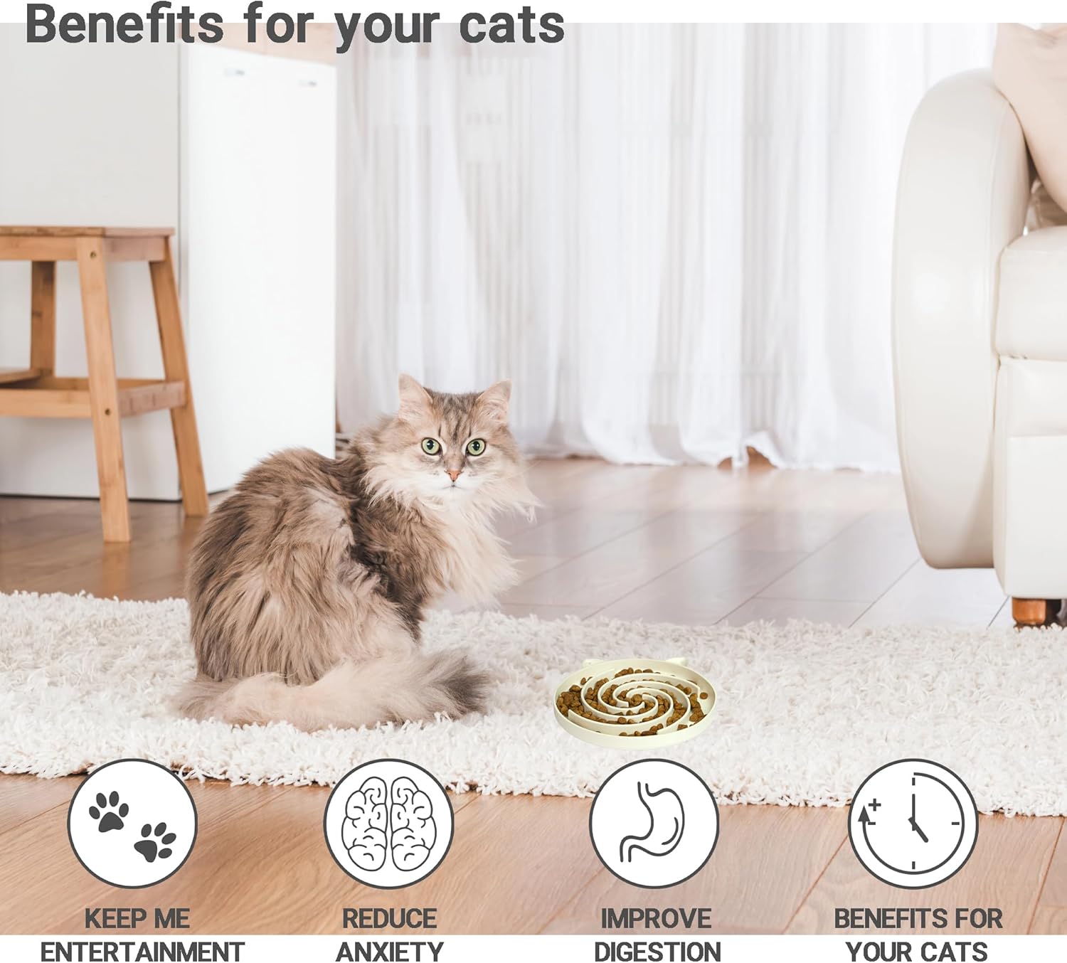 • Fun Slow Feed Bowl: The spiral pattern in our feeding bowl makes cats work for their food, as they need to navigate the curved channels to reach their meal. This design naturally slows down their eating pace, promoting better digestion while providing a more relaxed dining experience