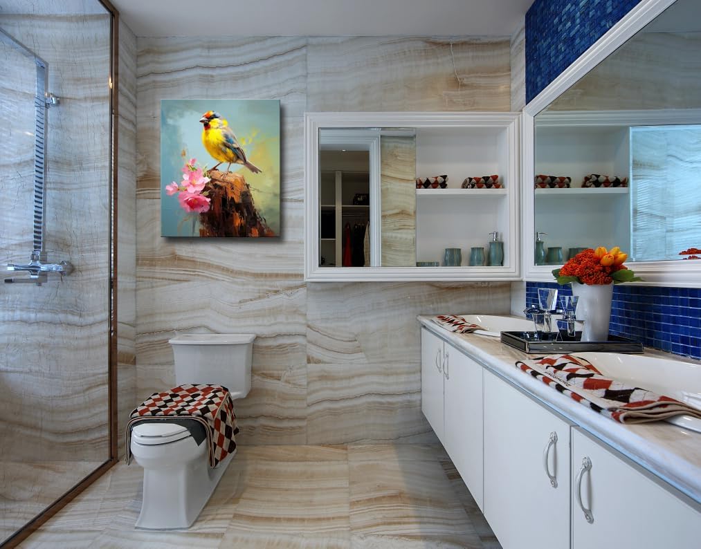 Bathroom Bird Decor Wall Art, Watercolor Bird Picture Canvas Wall Art Decor for Living Room Farmhouse Bathroom Decoration Framed Office Decor Kitchen Accessories 12"x15" 1 PCS