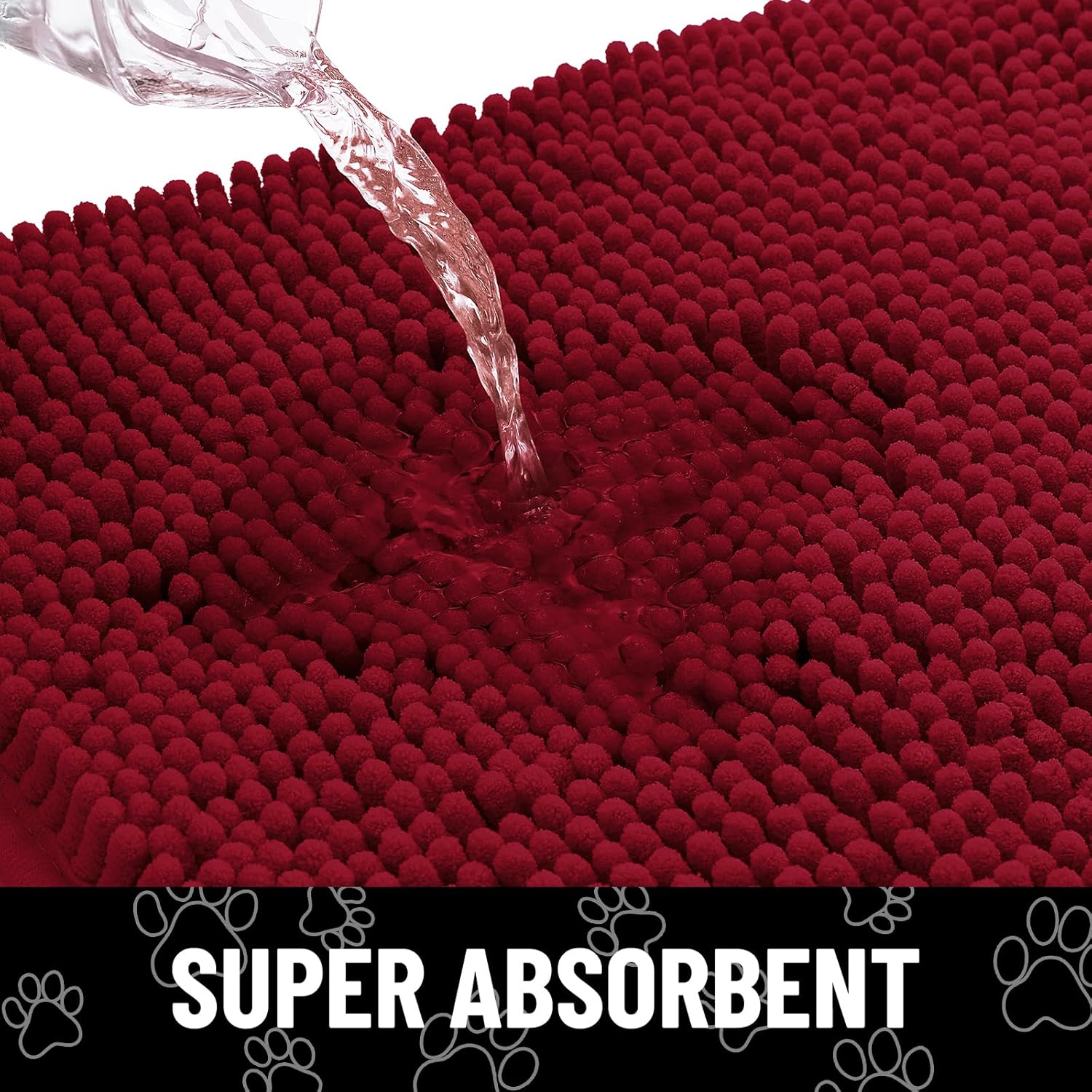 Smiry Dog Door Mat for Muddy Paws, Absorbent Dirt Trapper Non Slip Quick Dry Washable Chenille Mat for Mud Dogs, Entry Rug for Indoor and Outdoor (24x16 Inches, Red)