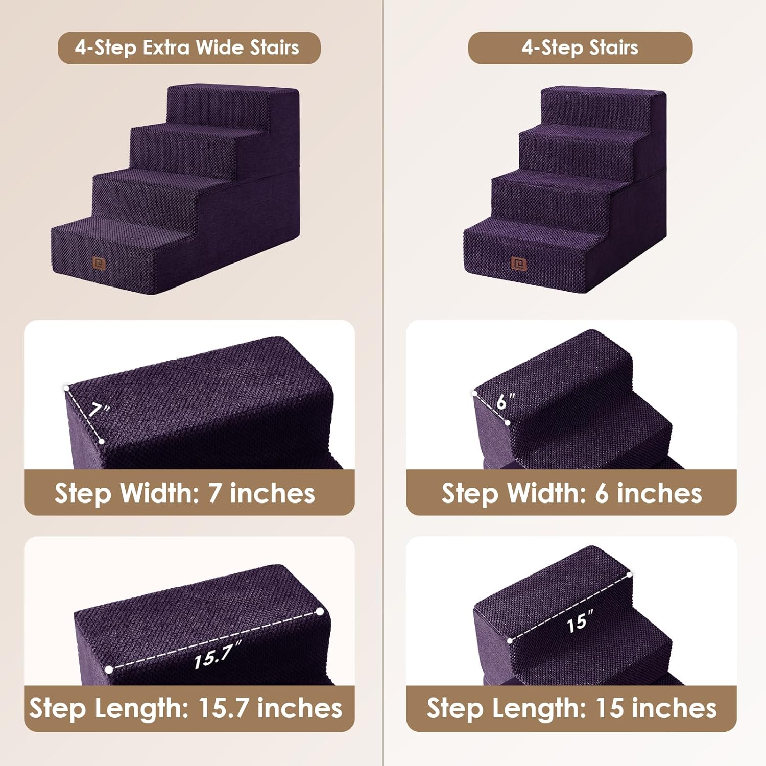 EHEYCIGA Dog Stairs for Bed 20" H, 4-Step Extra Wide Dog Steps for High Bed, Pet Steps for Small Dogs and Cats, Non-Slip Balanced Pet Ramp Indoor, Purple