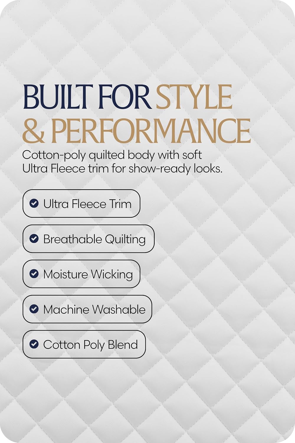 • ✅ Durable and Comfortable Design – The quilted poly cotton body ensures long-lasting durability and breathability, providing your horse with the ultimate comfort for hours of riding, whether you’re in the show ring or out for training.
