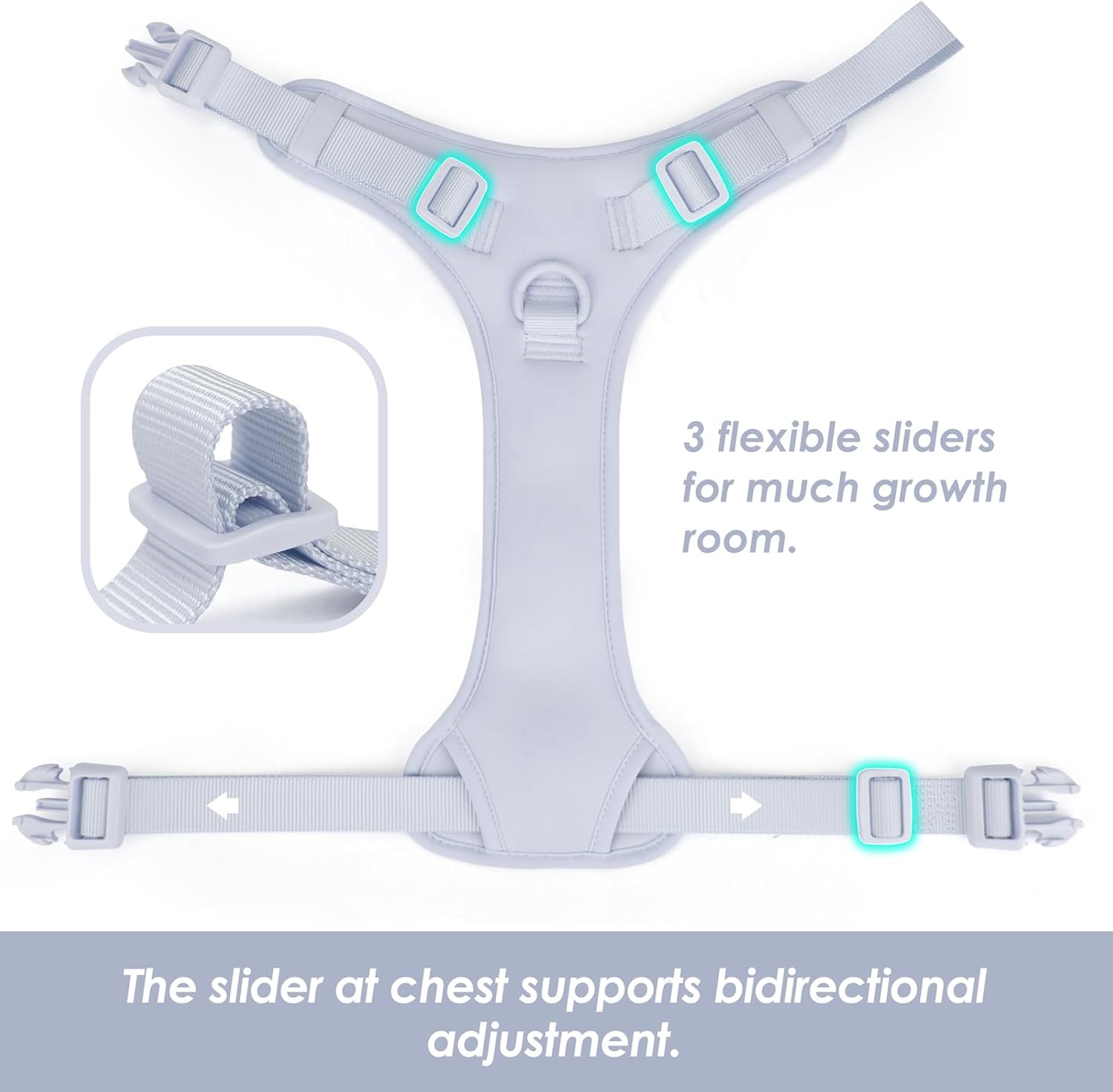 • No Pull Design: This dog harness features a front D-ring for no-pull control and a back D-ring for daily walking. The front ring redirects pulling to gentle side pressure, discouraging lunging and making walks more comfortable and manageable. With both rings, you have the flexibility to choose based on your walk's needs.