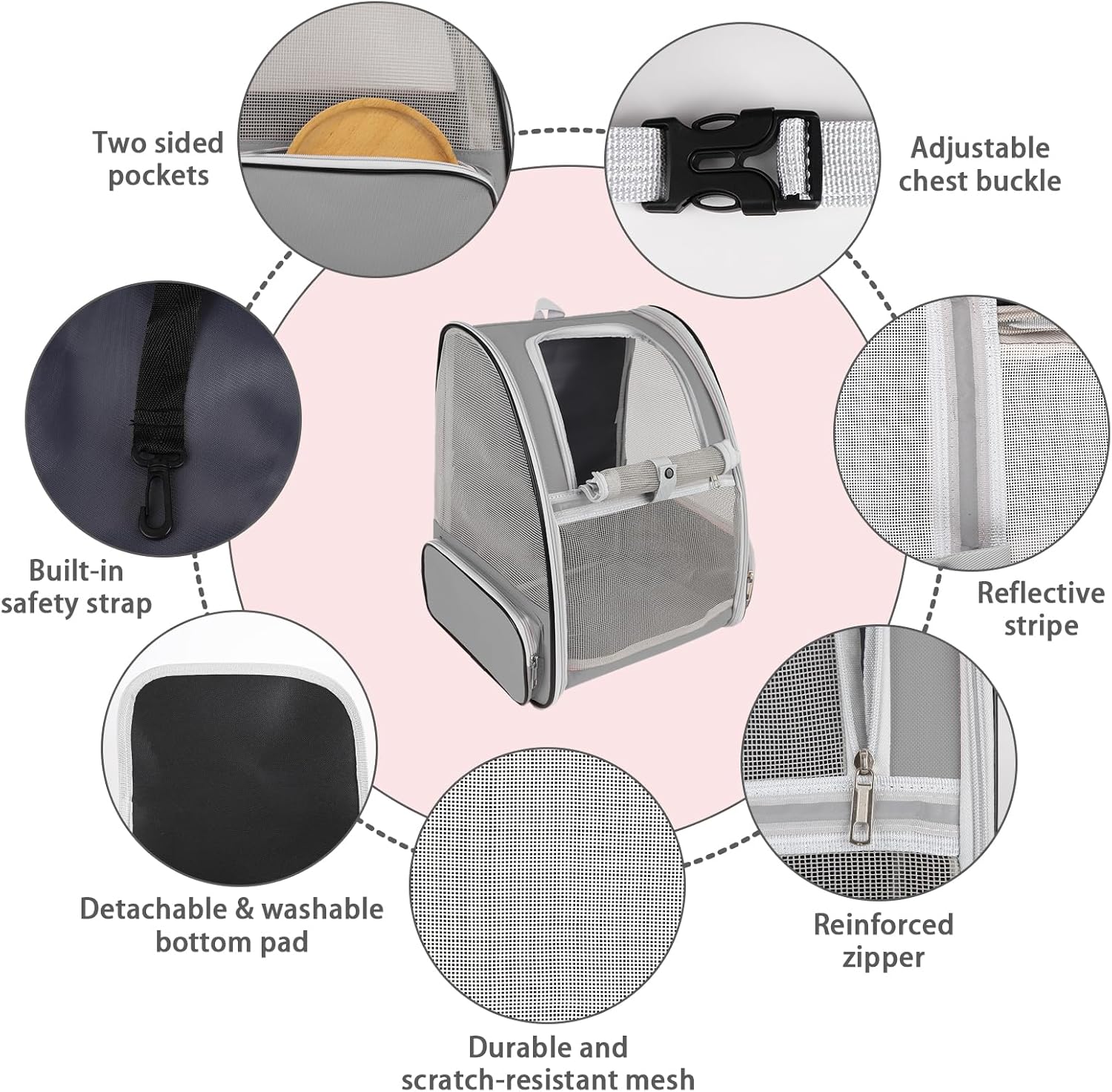 - Ventilated Mesh and Comfortable: Three-sided PVC mesh design ensures excellent air circulation and visibility, you can clearly view the status of pets inside the bag, and pets can also observe the outside. And this cat carrier backpack is firmly structured, providing ample room for your pet to move around