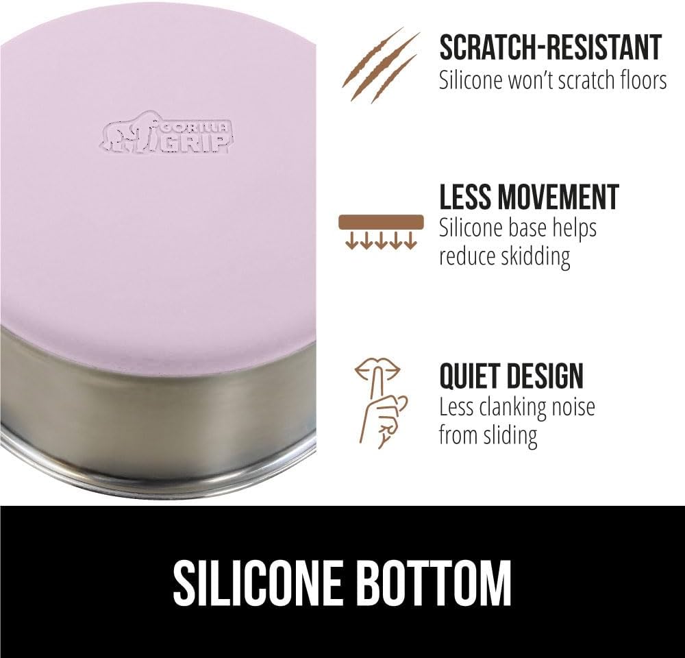 GORILLA GRIP Set of 2 Dog Bowls, Heavy Duty Metal Food and Water Bowl for Feeding Dogs and Cats, Dishwasher Safe, Rust Resistant Stainless Steel, BPA Free Rubber Base, Holds 1 Cup (8 fl oz), Lt Pink
