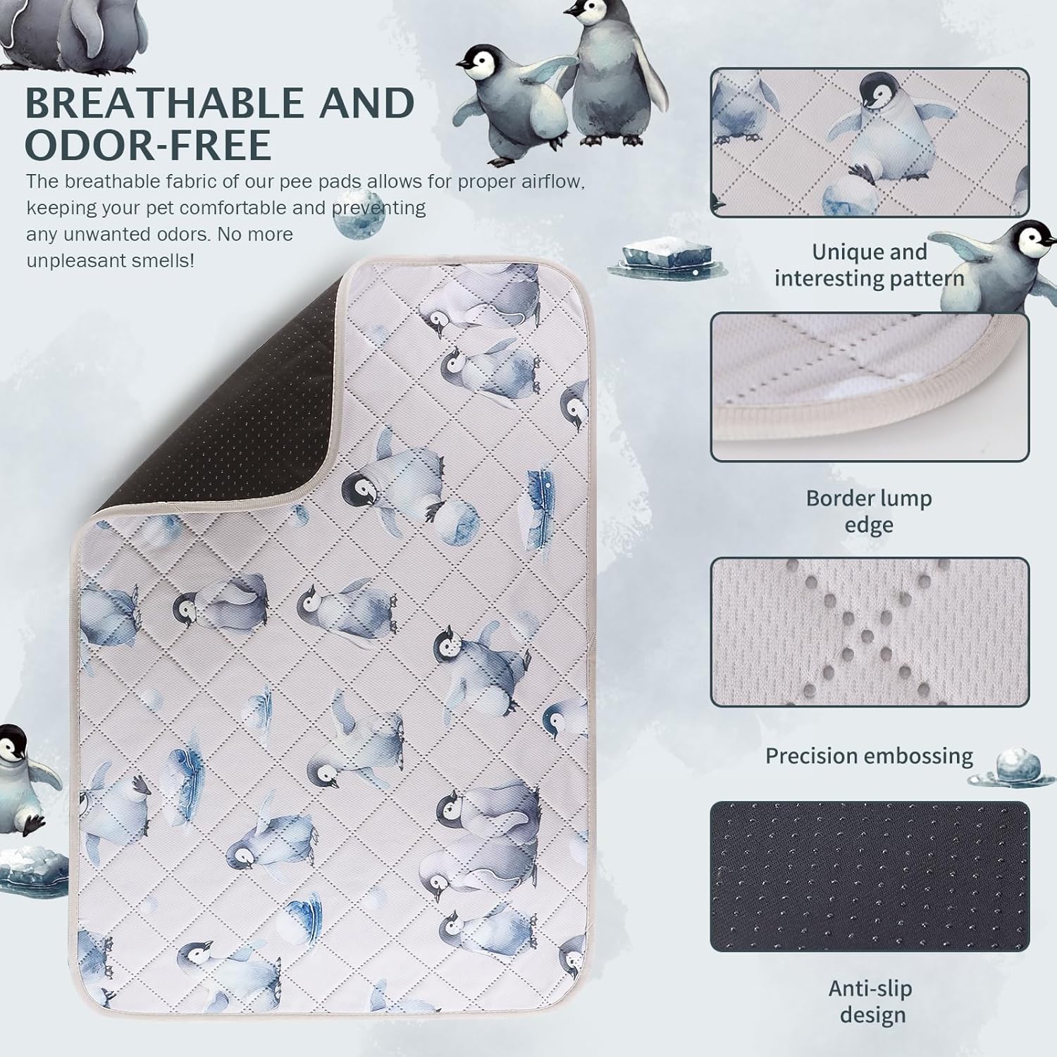 • 【Fashion and Non-slip】 The cute design makes this reusable pee pads for dogs very cute and makes your room more stylish. And the soft and comfortable puppy pee pads with anti-skid bottom can achieve a certain fixed effect.The bottom is waterproof and you can place it anywhere you want.