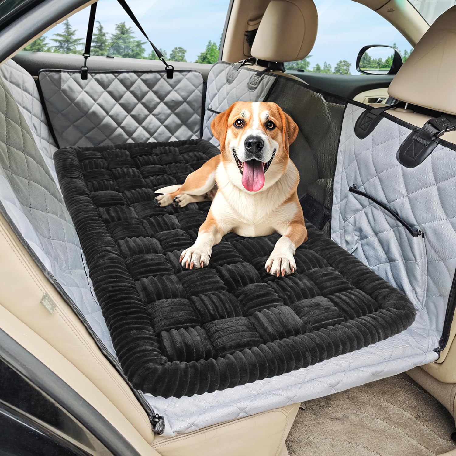 Dog Car Bed Mat, Non-Slip Backseat Extender Pet Blanket, Plaid Dog Bed for Trucks, Sedans & Large SUVs, Chew-Resistant Travel Pad for Dogs, Easy Clean & Scratch-Proof & Comfort (56"x28.7") Black