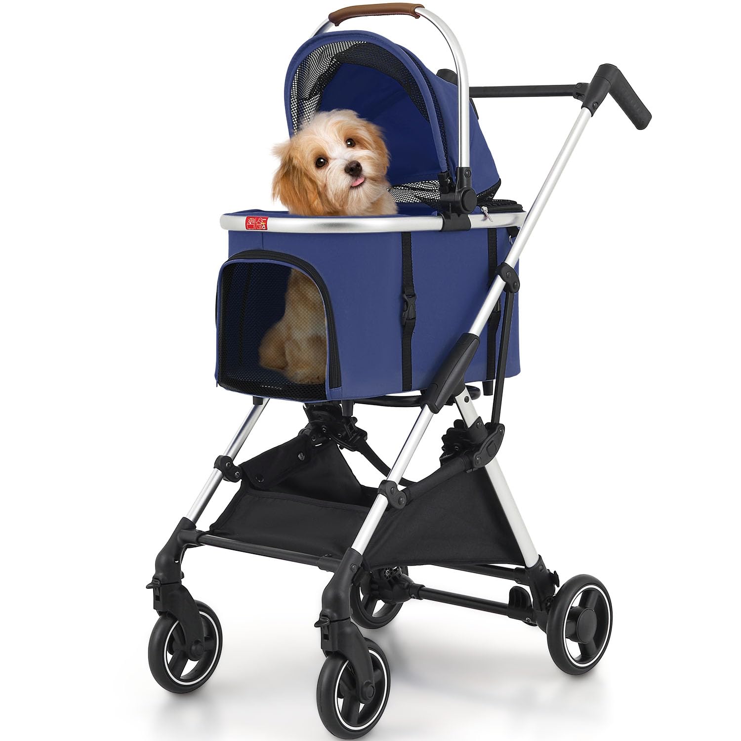 - [Ergonomic and Adjustable] - Our pet stroller features a retractable handle that can be adjusted to various heights, providing ergonomic comfort for pet owners of all statures; This customizable design ensures a relaxed, strain-free experience while you stroll with your pet
