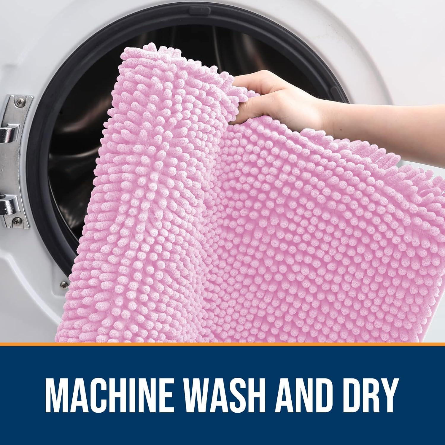 OLANLY Dog Door Mat for Muddy Paws 47x20, Absorbs Moisture and Dirt, Absorbent Non-Slip Washable Doormat, Quick Dry Chenille Mud Mat for Dogs, Entry Indoor Entryway Carpet for Inside Floor, Pink