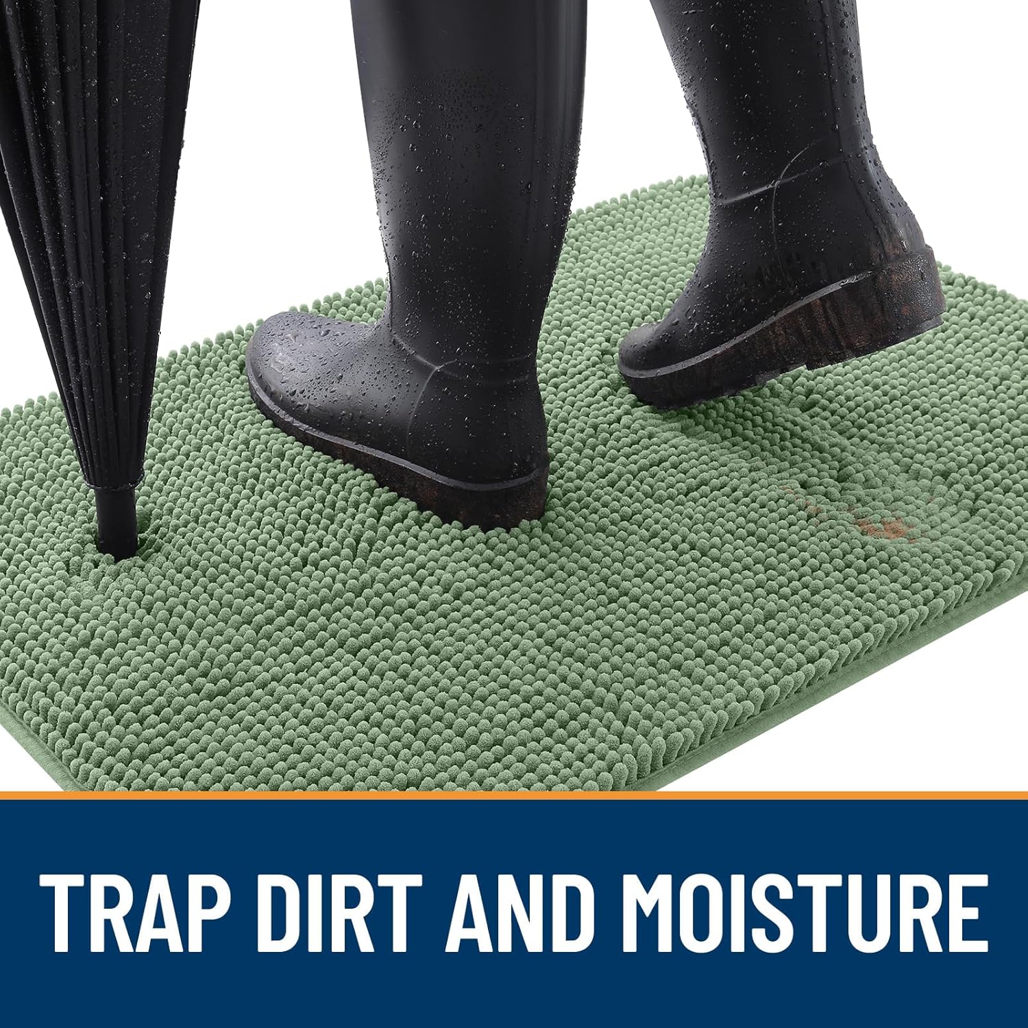 OLANLY Dog Door Mat for Muddy Paws 70x46, Absorbs Moisture and Dirt, Absorbent Non-Slip Washable Doormat, Quick Dry Chenille Mud Mat, Entry Indoor Entryway Carpet for Inside Floor, Olive Green