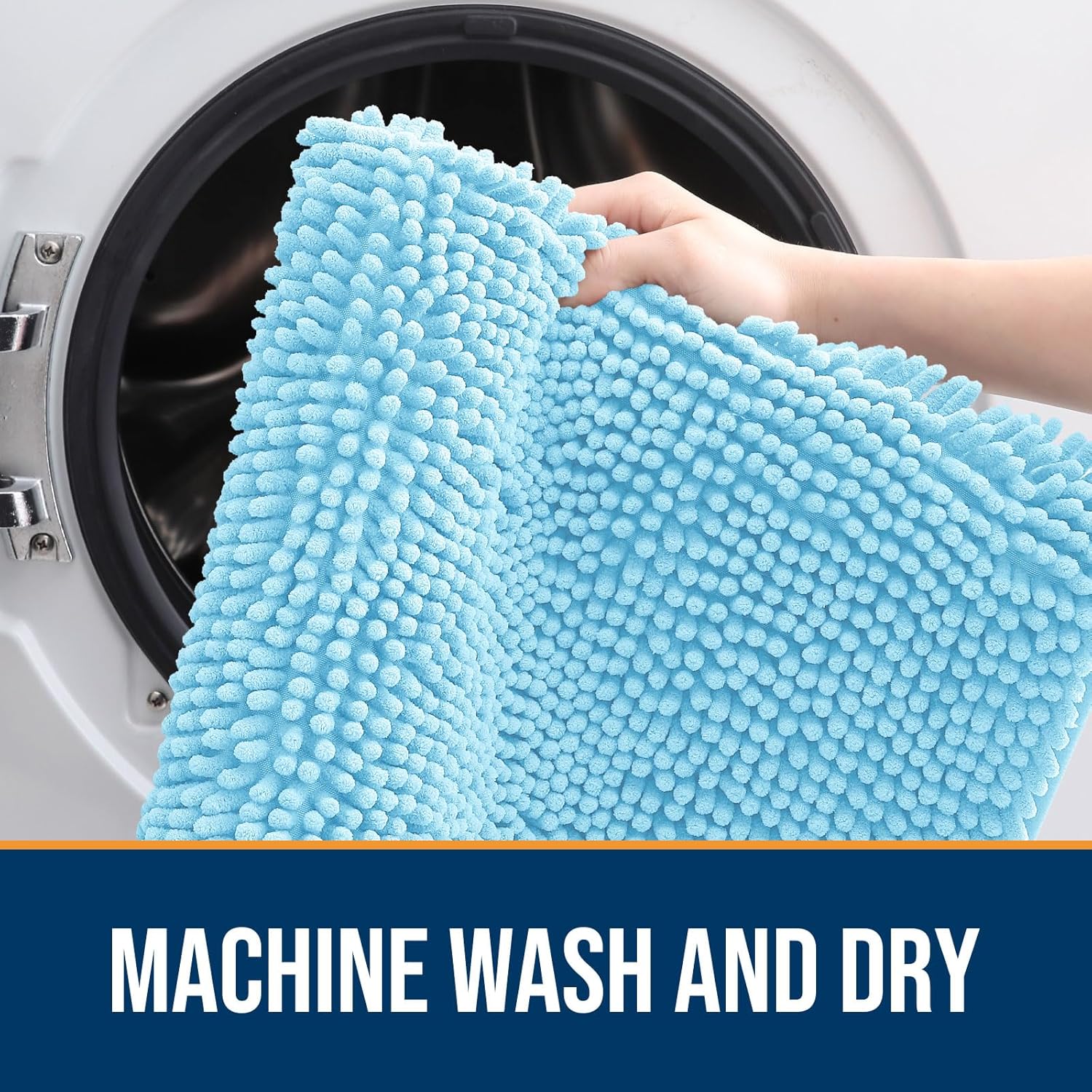 OLANLY Dog Door Mat for Muddy Paws 59x20, Absorbs Moisture and Dirt, Absorbent Non-Slip Washable Doormat, Quick Dry Chenille Mud Mat for Dogs, Entry Indoor Entryway Carpet for Inside Floor, Blue
