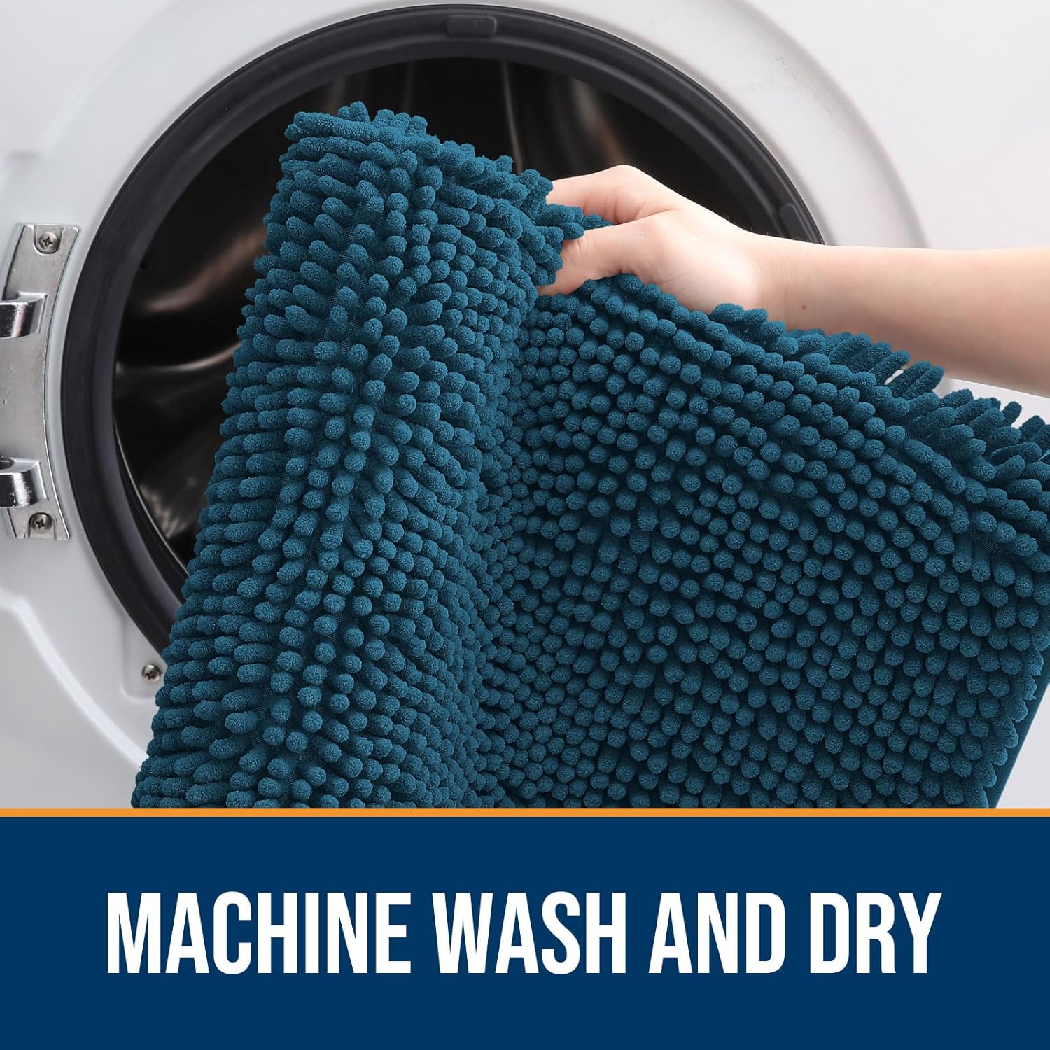 OLANLY Dog Door Mat for Muddy Paws 44x24, Absorbs Moisture and Dirt, Absorbent Non-Slip Washable Doormat, Quick Dry Chenille Mud Mat, Entry Indoor Entryway Carpet for Inside Floor, Atlantic Blue