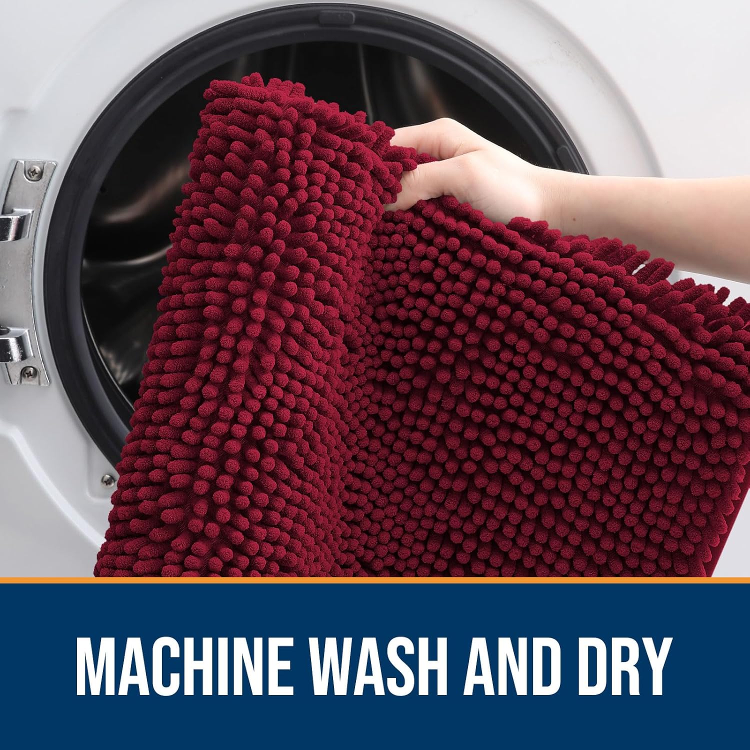 OLANLY Dog Door Mat for Muddy Paws 45x27, Absorbs Moisture and Dirt, Absorbent Non-Slip Washable Doormat, Quick Dry Chenille Mud Mat for Dogs, Entry Indoor Entryway Carpet for Inside Floor, Burgundy
