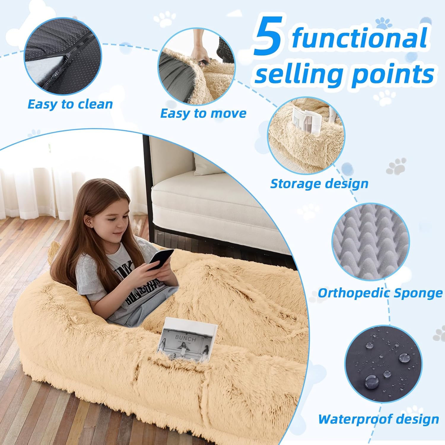 - Wash & Care: human dog bed for peoples size just needs to open the zipper, take out the filler, and put the bed cover into the washing machine for low-temperature cleaning. Please avoid using high-temperature cleaning or drying, we recommend natural air drying it. If there are any questions, please contact us as soon as possible, and we will solve the problem the first time.