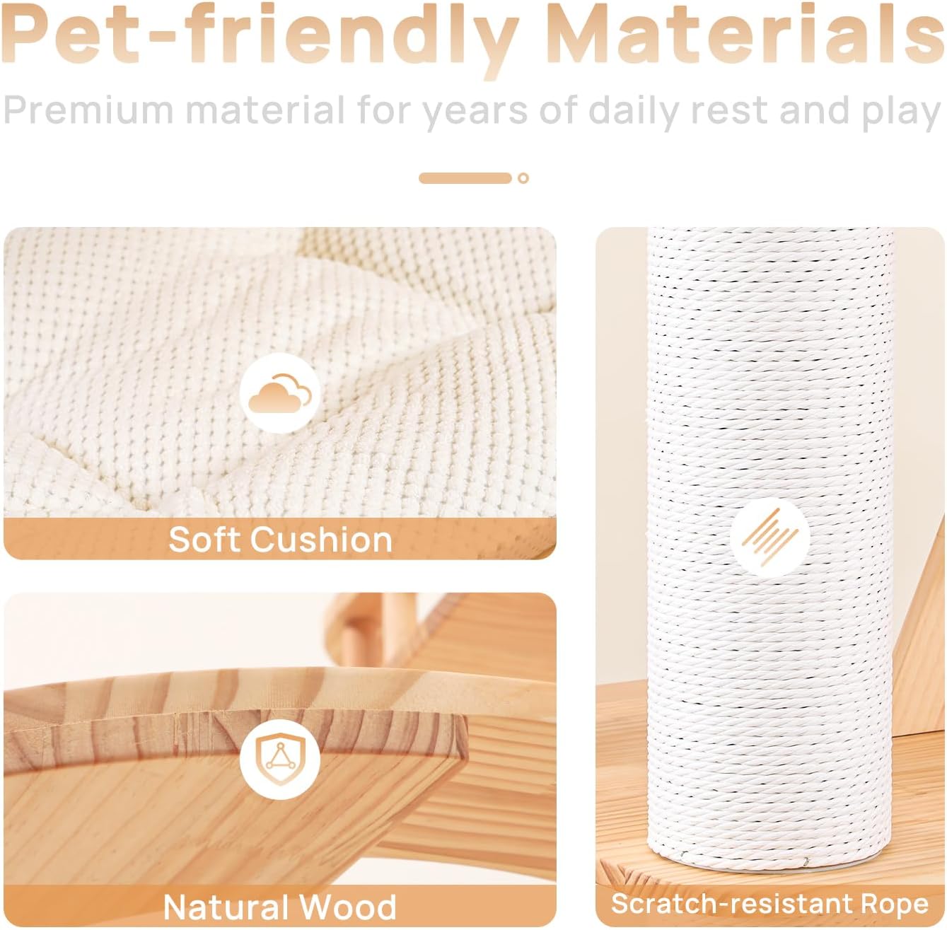 • 【Pet-friendly Material】Our cat tower crafted from superior 100% pine wood that combines luxury with stability. The scratching posts are fully wrapped in durable kraft paper rope, offering tactile pleasure and durability for your kitten. This cat furniture is designed to offer a safe, sturdy and entertaining home for your kittens.