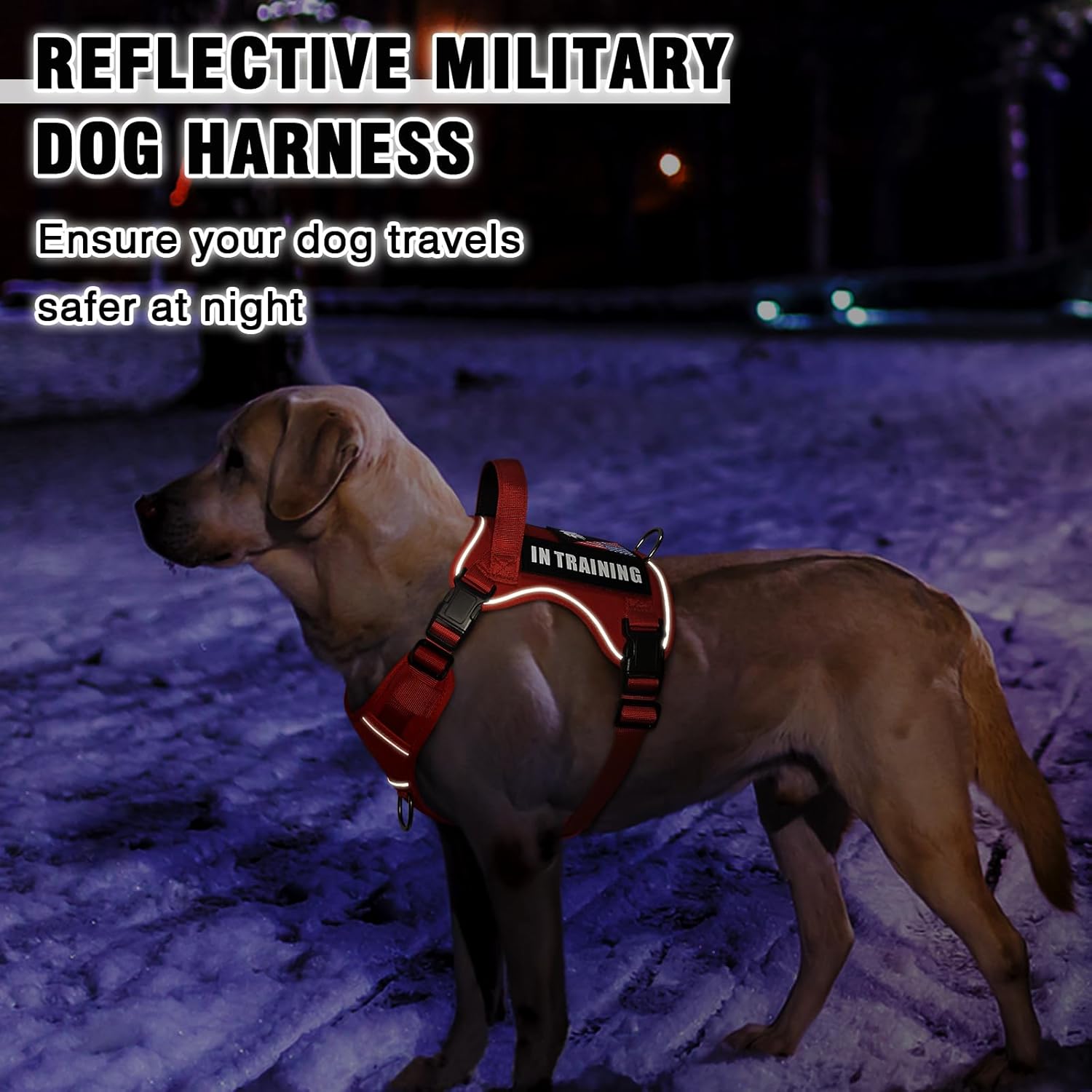 WINSEE Service Dog in Training Harness with 5 PCS Patches, Reflective Tactical Dog Vest Harness, Adjustable Soft Oxford Pet Harness with Easy Control Handle, Hook & Loop Panels for Walking Hiking
