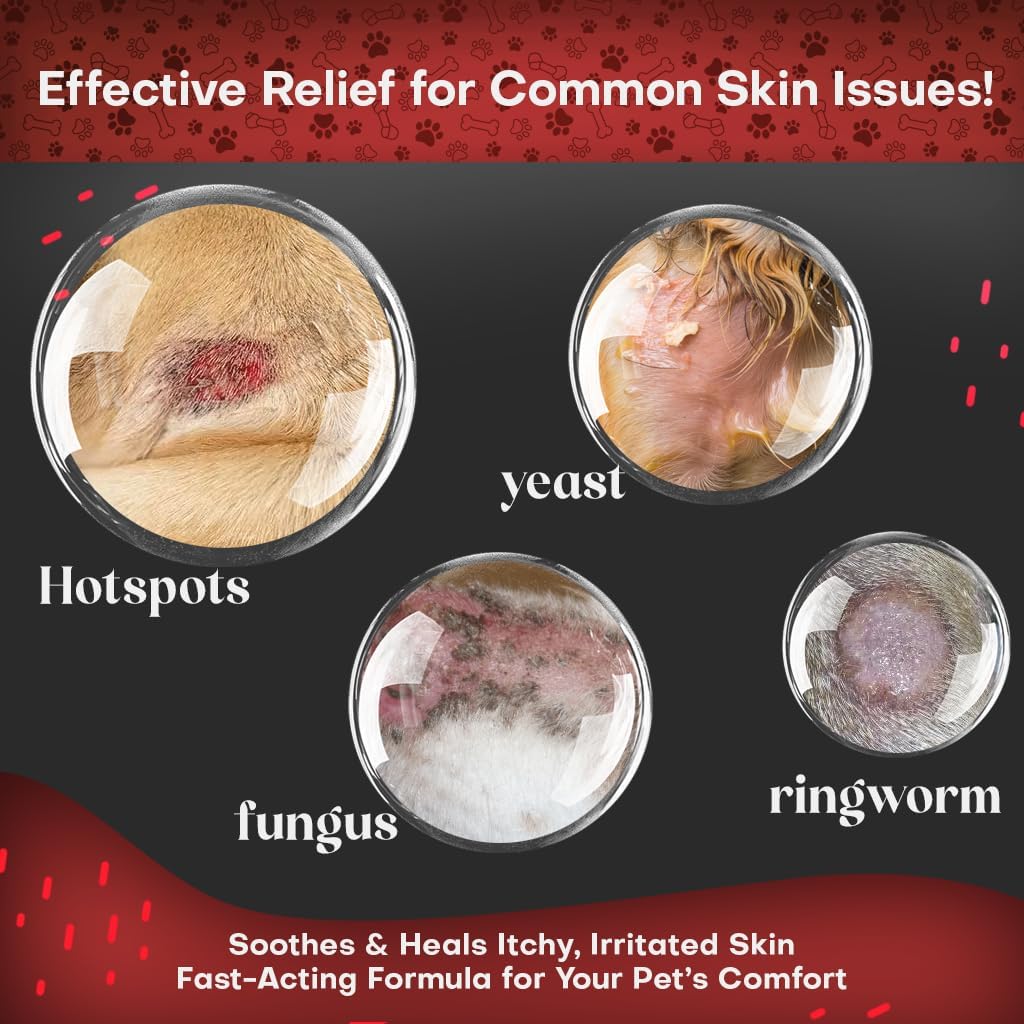 - VET-STRENGTH ANTIFUNGAL & ANTIBACTERIAL FORMULA – Helps fight yeast, ringworm, hot spots, and skin infections, delivering visible relief for itching, redness, and odor.