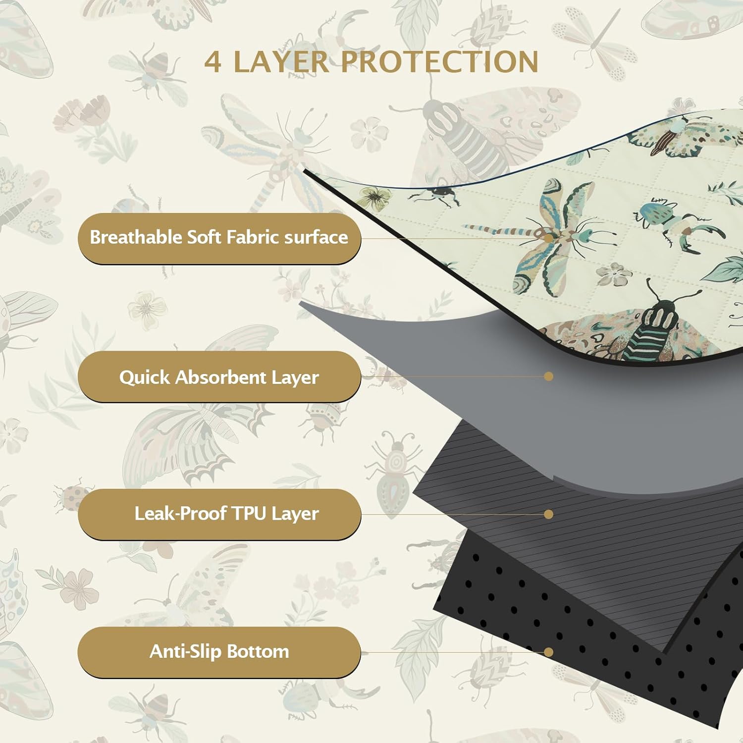 IEUUMLER Washable Pee Pads for Dogs, 2 Pack Insect Pattern Reusable Waterproof Puppy Potty Pads, Non-Slip Absorbent Pet Training Pads for Playpen Crate Bed EU014
