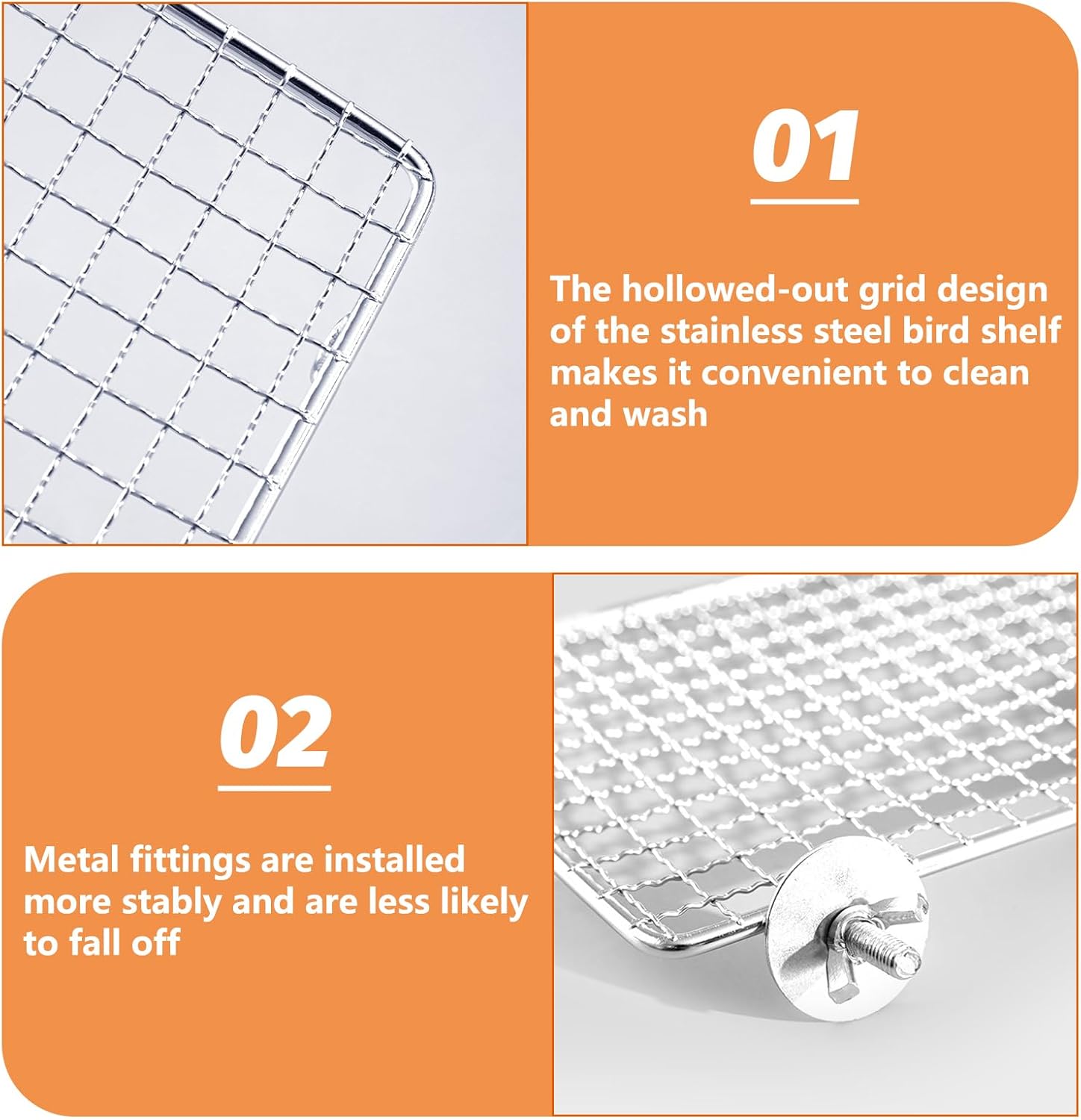 - Stainless Steel Material: BNOSDM bird perch platform stand is made of stainless steel, which is of good quality, stable and durable, and not easy to deform. Bird perch shelf grid structure can keep the platform dry and promote air circulation