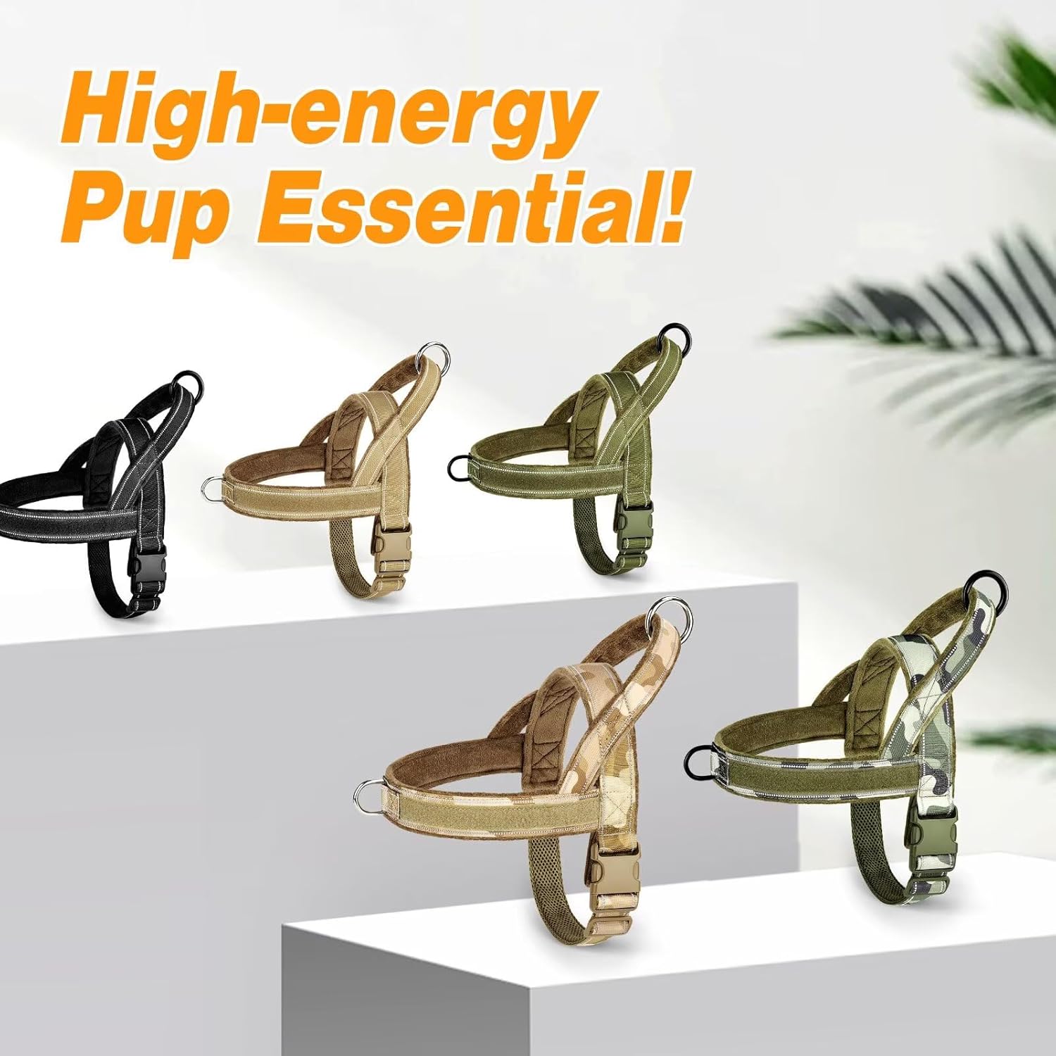 Forestpaw No Pull Dog Harness - Soft Flannel Padded Tactical Dog Vest Harness with Quick Release Buckle, Adjustable Reflective Pet Harness for Medium Large Dogs Walking Training,Green L