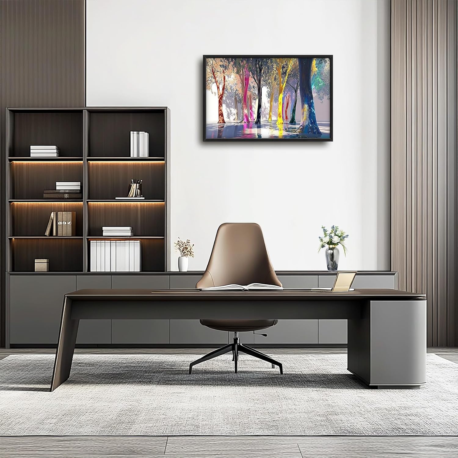 Framed Large Trees Wall Art for Living Room, Oversized Abstract Forest Wall Decor Colorful Nature Canvas Painting Modern Artwork Home Decoration for Living Room Bedroom Dining Room Office 36"x24"