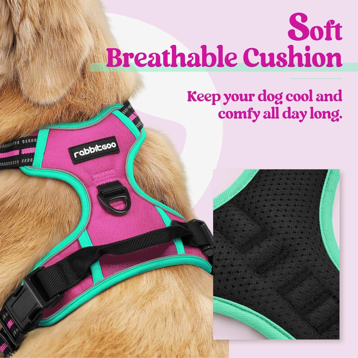 rabbitgoo Dog Harness No Pull with 2 Leash Clips, Adjustable Soft Padded, Reflective Oxford No Choke Pet Vest with Easy Control Handle for Large Dogs, Hot Pink & Turquoise, S