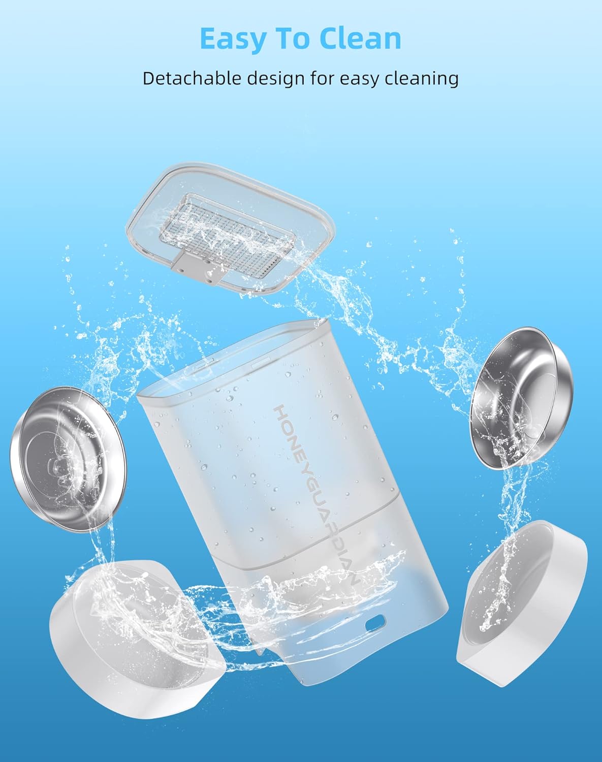 • [Easy to operate, easy to disassemble and wash] The automatic feeder is easy to set up and you can set up a feeding schedule in minutes. The top cover, clear food bucket and stainless steel bowl can be removed from the main unit and cleaned with water. In addition to the main unit, other parts of the cat feeder should be cleaned regularly to provide a clean and healthy feeding environment for your pet.