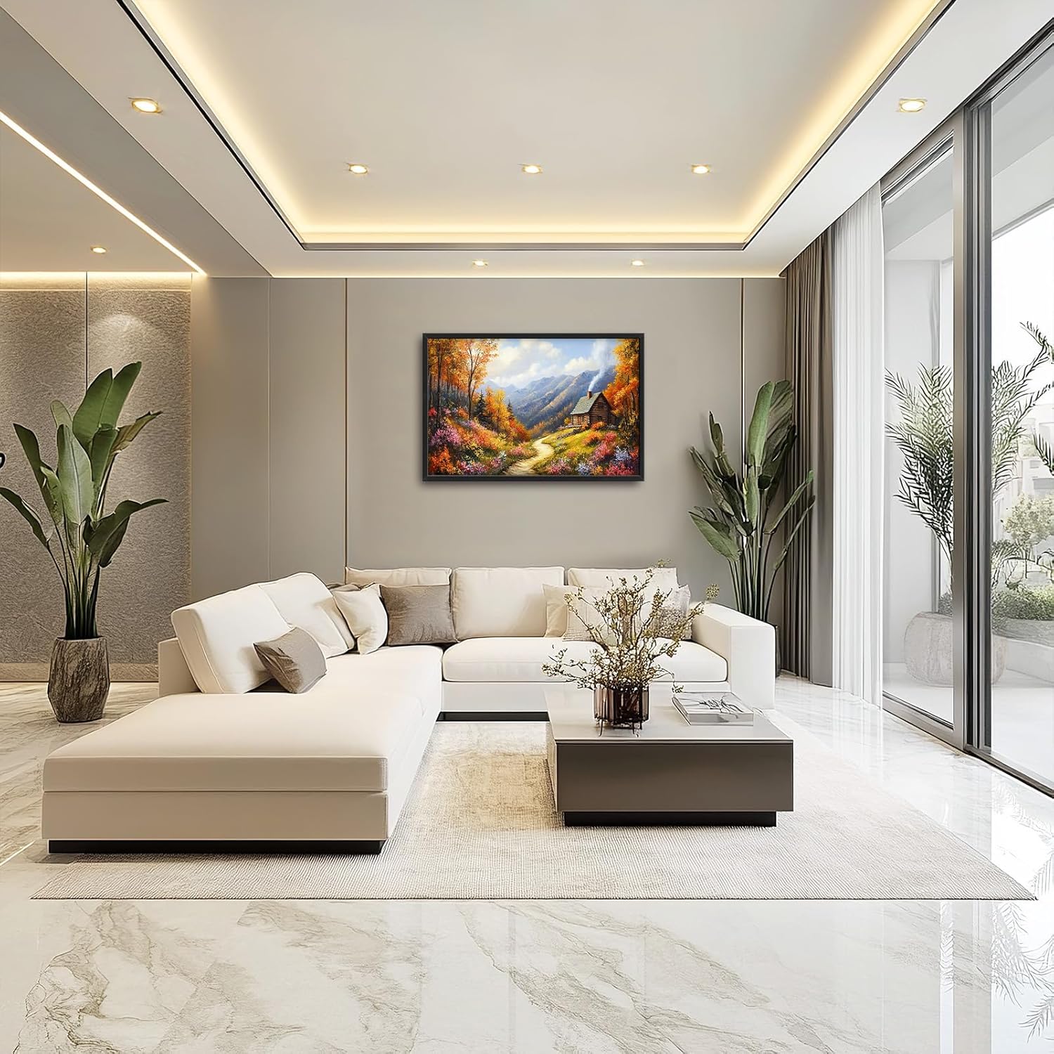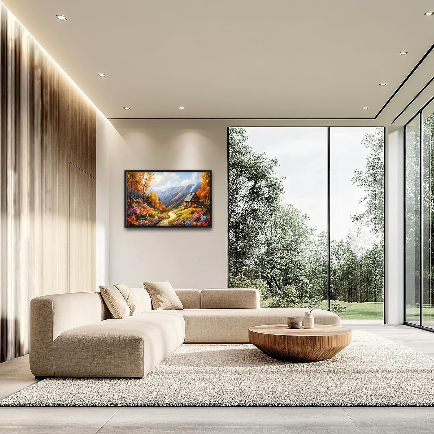 Framed Large Autumn Mountain Wall Art for Living Room, Oversized Wildflower Tree Wall Decor Nature Landscape Canvas Painting Modern Artwork Home Decoration for Living Room Bedroom 36"x24"