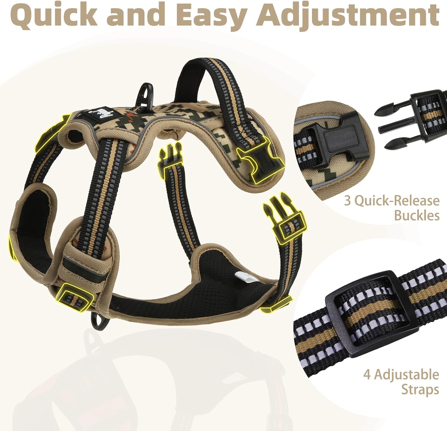 PUPTECK No Pull Dog Harness Small Sized, Adjustable Reflective Dog Harness with Handle Easy Control, Comfortable Soft Padded Pet Vest Harness for Small Dogs, Camouflage S